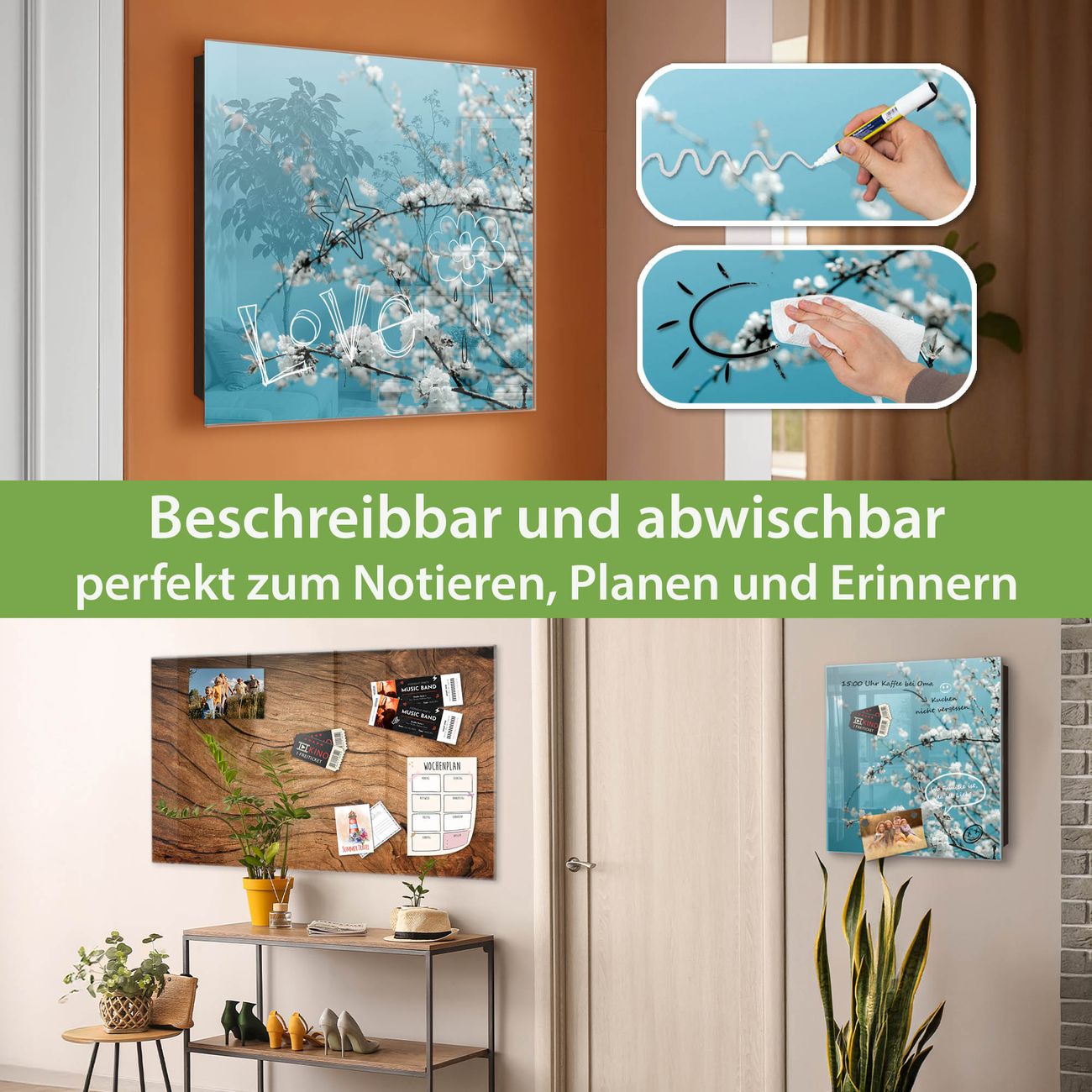 ✅ Magnetisch und mit Kreidestift beschreibbar, gehärtetes Glas, links angeschlagene TürOrdnung und Design in einem