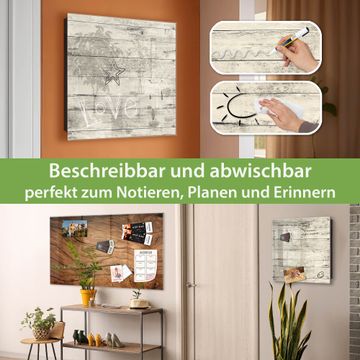 Bringe Ordnung und Eleganz in deinen Eingangsbereich mit dem banjado Schlüsselkasten Motiv Motiv Weiße Planken H. Die moderne Schlüsselbox kombiniert funktionales Design mit hochwertiger Verarbeitung und wird so zu einem echten Hingucker in Flur, Büro oder Ferienwohnung. ✅ Stilvolle Schlüsselaufbewahrung mit Glasfront im Motiv Motiv Weiße Planken H Der Design-Schlüsselkasten Motiv Motiv Weiße Planken H bietet Platz für bis zu 50 Schlüssel, die auf 5 stabilen Reihen mit je 10 Haken übersichtlich verstaut werden. Mit seinen kompakten Maßen von 30 x 30 x 5 cm passt die Schlüsselbox perfekt auch in kleinere Räume. Der schwarz lackierte Stahlkorpus mit rechts angeschlagenem Türscharnier harmoniert mit der Glasfront und fügt sich nahtlos in jedes Wohnambiente ein. Ob als Schlüsselorganizer für Zuhause oder als praktische Lösung für Büros, Praxen und Gewerbe, der banjado Schlüsselkasten sorgt für Ordnung und Übersicht. Dank der magnetischen, mit Kreidestiften beschreibbaren Glasfront kannst du Notizen anheften oder Termine direkt auf der Oberfläche festhalten. Die Schlüsselbox Motiv Motiv Weiße Planken H zur Wandmontage wird inklusive Befestigungsmaterial geliefert und ist schnell angebracht. So hast du deine Schlüssel jederzeit griffbereit und zugleich stilvoll verstaut. Mit diesem banjado Schlüsselkasten Motiv Motiv Weiße Planken H kombinierst du praktische Aufbewahrung mit stilvollem Wohndesign. Ob privat oder geschäftlich, die Schlüsselbox sorgt für mehr Ordnung, Übersicht und ein wohnliches Ambiente.Vorteile im Überblick