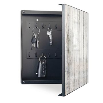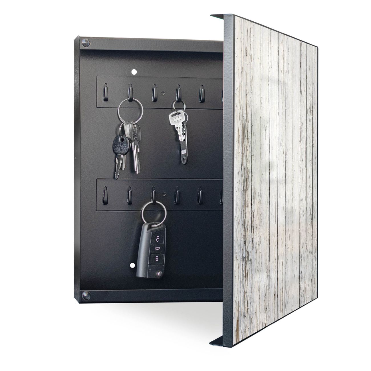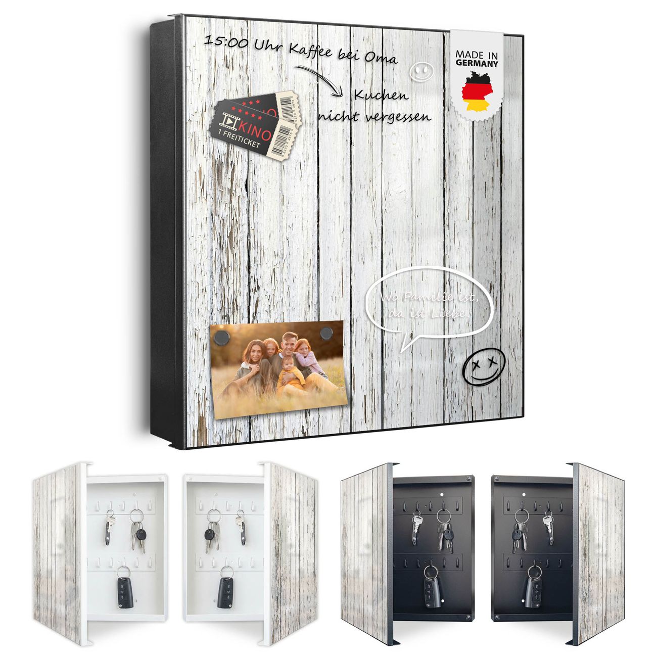 Bringe Ordnung und Eleganz in deinen Eingangsbereich mit dem banjado Schlüsselkasten Motiv Motiv Weißer Bretterzaun. Die moderne Schlüsselbox kombiniert funktionales Design mit hochwertiger Verarbeitung und wird so zu einem echten Hingucker in Flur, Büro oder Ferienwohnung. ✅ Stilvolle Schlüsselaufbewahrung mit Motiv Motiv Weißer Bretterzaun Der Design-Schlüsselkasten Motiv Motiv Weißer Bretterzaun bietet Platz für bis zu 32 Schlüssel, die auf 4 stabilen Reihen mit je 8 Haken übersichtlich verstaut werden. Mit seinen kompakten Maßen von 30 x 30 x 5 cm passt die Schlüsselbox perfekt auch in kleinere Räume. Der schwarz lackierte Stahlkorpus mit rechts angeschlagenem Türscharnier harmoniert mit gedruckten Folie auf der Front und fügt sich nahtlos in jedes Wohnambiente ein. Ob als Schlüsselorganizer für Zuhause oder als praktische Lösung für Büros, Praxen und Gewerbe, der banjado Schlüsselkasten sorgt für Ordnung und Übersicht. Dank der magnetischen, mit Kreidestiften beschreibbaren Folie auf der Front kannst du Notizen anheften oder Termine direkt auf der Oberfläche festhalten. Die Schlüsselbox Motiv Motiv Weißer Bretterzaun zur Wandmontage wird inklusive Befestigungsmaterial geliefert und ist schnell angebracht. So hast du deine Schlüssel jederzeit griffbereit und zugleich stilvoll verstaut. Mit diesem banjado Schlüsselkasten Motiv Motiv Weißer Bretterzaun kombinierst du praktische Aufbewahrung mit stilvollem Wohndesign. Ob privat oder geschäftlich, die Schlüsselbox sorgt für mehr Ordnung, Übersicht und ein wohnliches Ambiente.Vorteile im Überblick