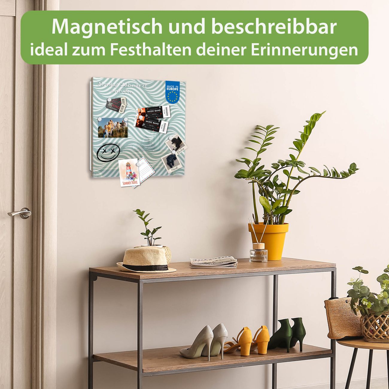 Bringe Ordnung und Eleganz in deinen Eingangsbereich mit dem banjado Schlüsselkasten Motiv Motiv Wellen Lindgrün. Die moderne Schlüsselbox kombiniert funktionales Design mit hochwertiger Verarbeitung und wird so zu einem echten Hingucker in Flur, Büro oder Ferienwohnung. ✅ Stilvolle Schlüsselaufbewahrung mit Glasfront im Motiv Motiv Wellen Lindgrün Der Design-Schlüsselkasten Motiv Motiv Wellen Lindgrün bietet Platz für bis zu 50 Schlüssel, die auf 5 stabilen Reihen mit je 10 Haken übersichtlich verstaut werden. Mit seinen kompakten Maßen von 30 x 30 x 5 cm passt die Schlüsselbox perfekt auch in kleinere Räume. Der weiß lackierte Stahlkorpus mit rechts angeschlagenem Türscharnier harmoniert mit der Glasfront und fügt sich nahtlos in jedes Wohnambiente ein. Ob als Schlüsselorganizer für Zuhause oder als praktische Lösung für Büros, Praxen und Gewerbe, der banjado Schlüsselkasten sorgt für Ordnung und Übersicht. Dank der magnetischen, mit Kreidestiften beschreibbaren Glasfront kannst du Notizen anheften oder Termine direkt auf der Oberfläche festhalten. Die Schlüsselbox Motiv Motiv Wellen Lindgrün zur Wandmontage wird inklusive Befestigungsmaterial geliefert und ist schnell angebracht. So hast du deine Schlüssel jederzeit griffbereit und zugleich stilvoll verstaut. Mit diesem banjado Schlüsselkasten Motiv Motiv Wellen Lindgrün kombinierst du praktische Aufbewahrung mit stilvollem Wohndesign. Ob privat oder geschäftlich, die Schlüsselbox sorgt für mehr Ordnung, Übersicht und ein wohnliches Ambiente.Vorteile im Überblick