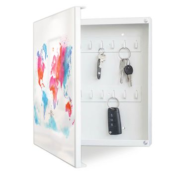 Schlüsselkasten Motiv Weltkarte pastell
