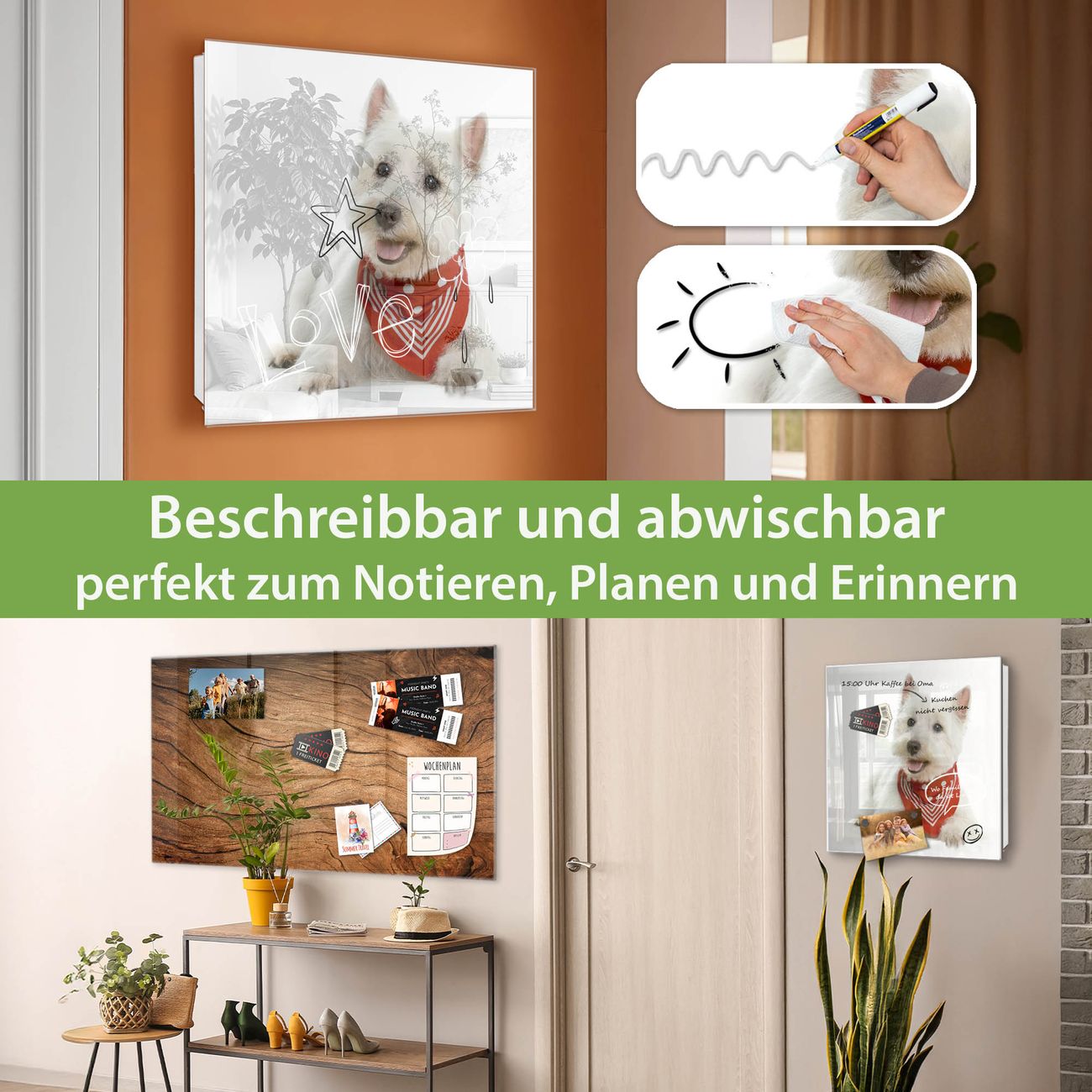 ✅ Magnetisch und mit Kreidestift beschreibbar, gehärtetes Glas, rechts angeschlagene TürOrdnung und Design in einem