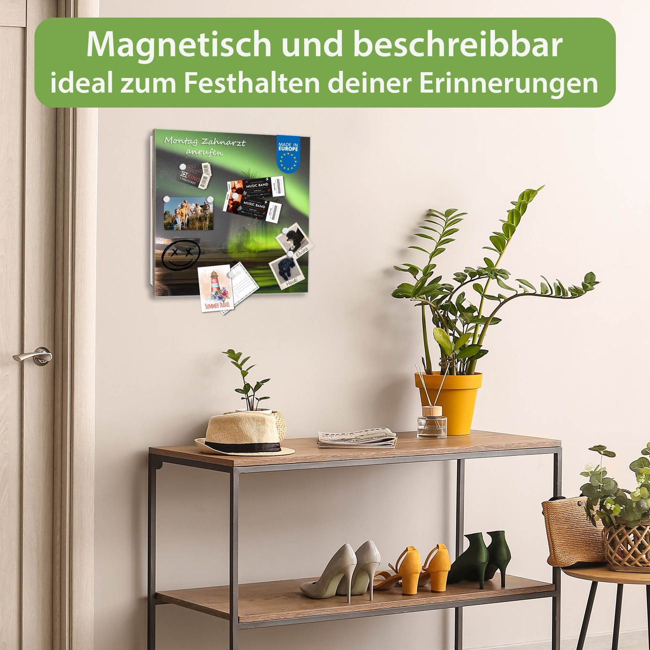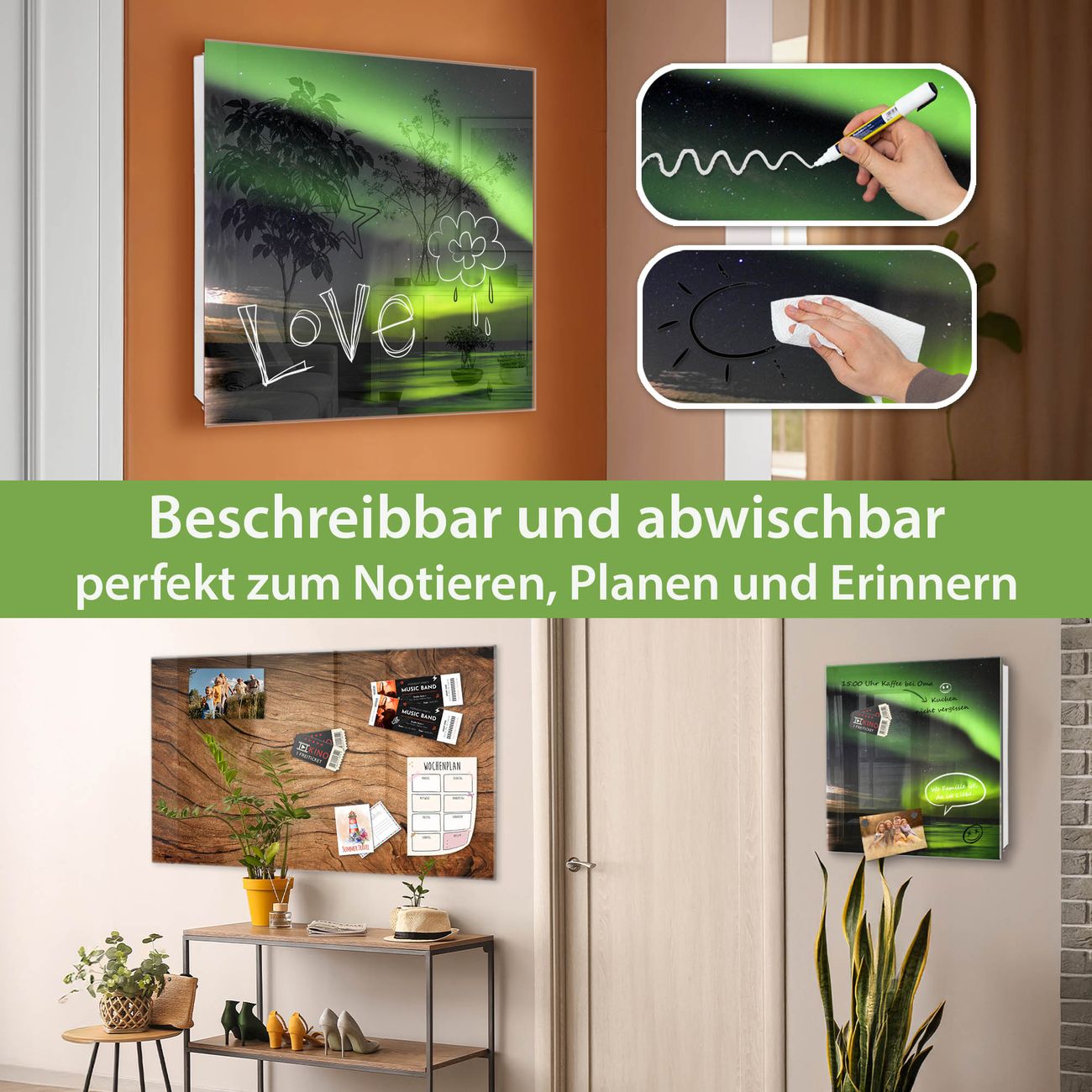 ✅ Magnetisch und mit Kreidestift beschreibbar, gehärtetes Glas, rechts angeschlagene TürOrdnung und Design in einem