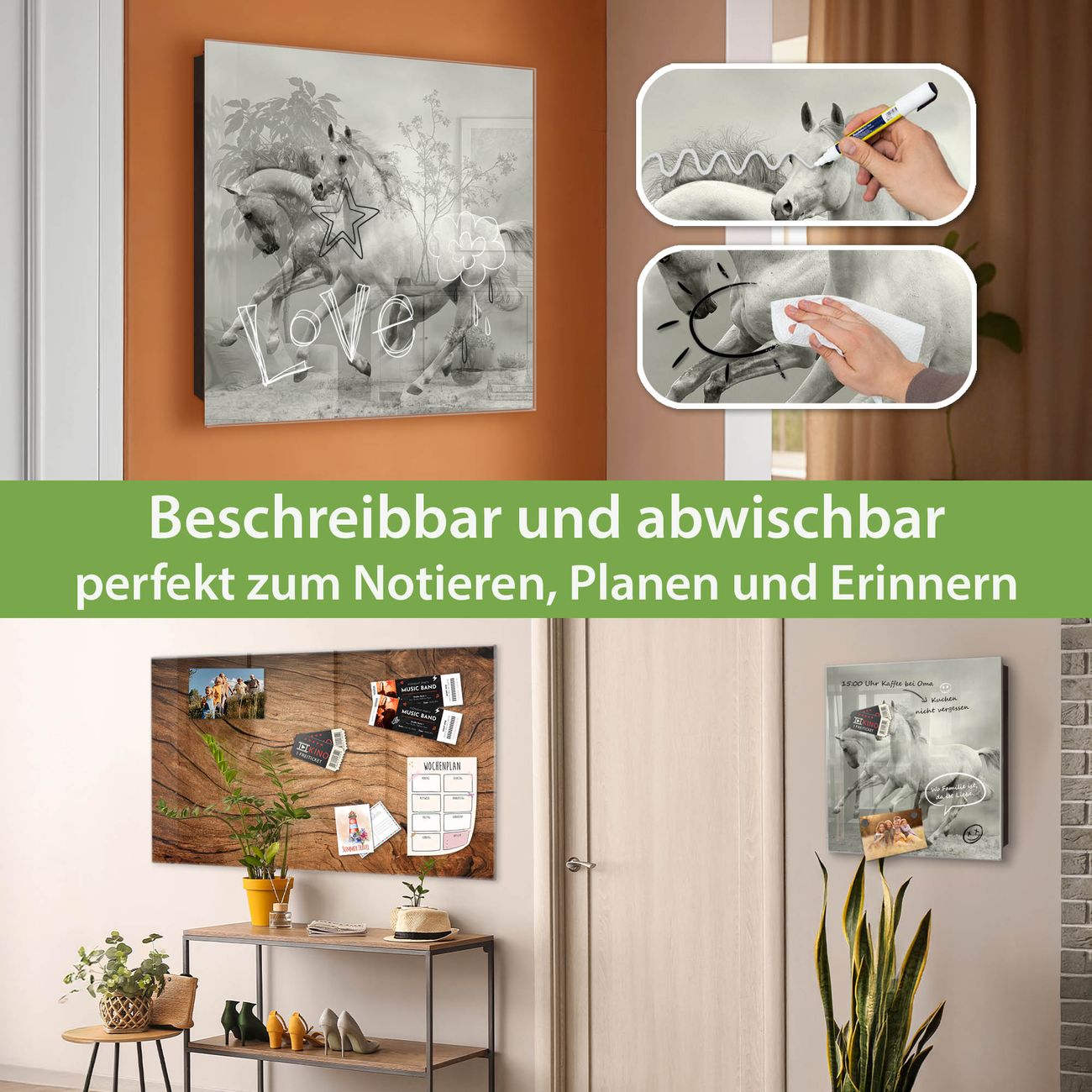 ✅ Magnetisch und mit Kreidestift beschreibbar, gehärtetes Glas, links angeschlagene TürOrdnung und Design in einem