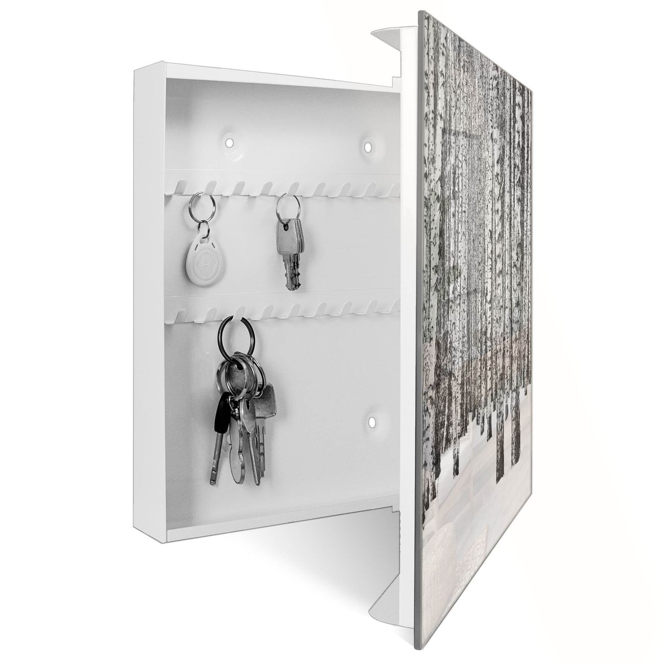 Schlüsselkasten Glas Motiv Winterlicher Birkenwald
