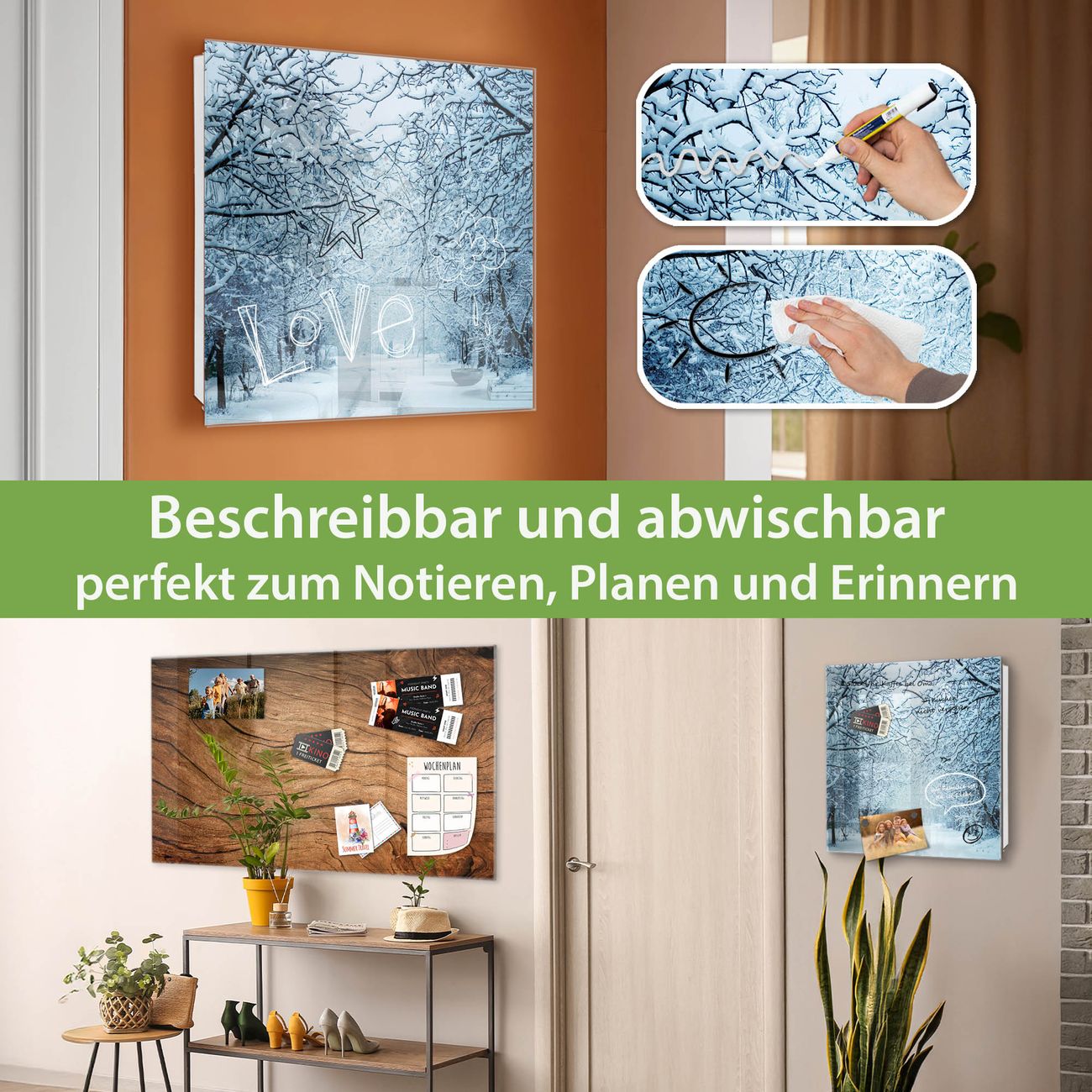 ✅ Magnetisch und mit Kreidestift beschreibbar, gehärtetes Glas, rechts angeschlagene TürOrdnung und Design in einem