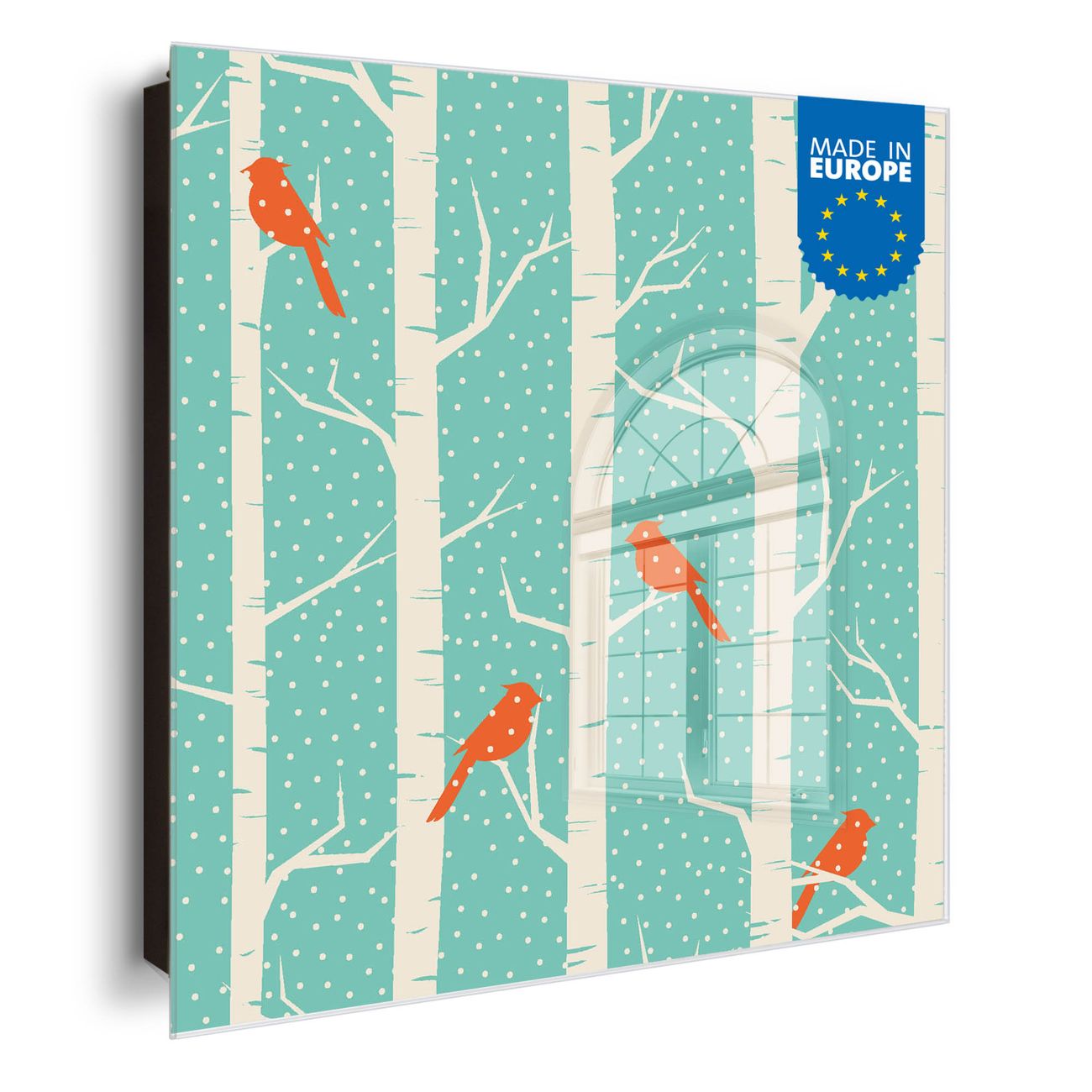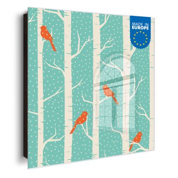 Schlüsselkasten Glas Motiv Wintervögel