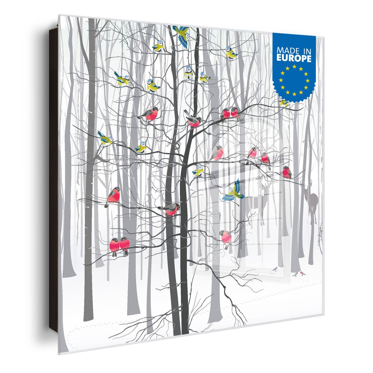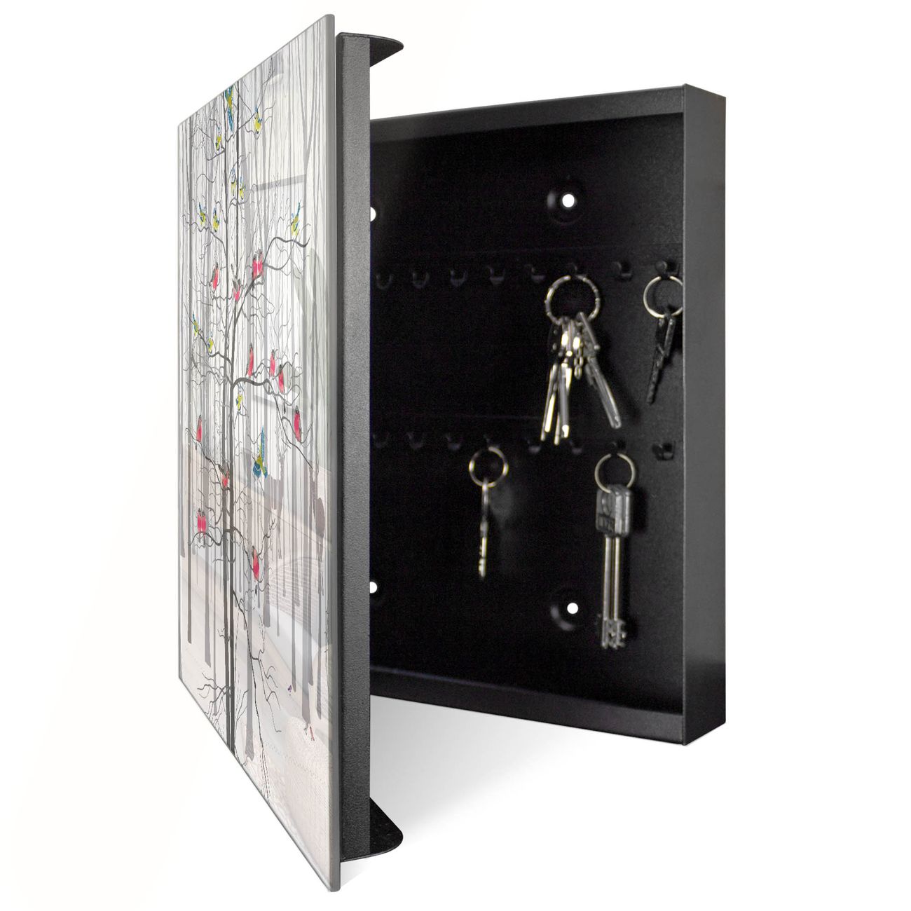 Bringe Ordnung und Eleganz in deinen Eingangsbereich mit dem banjado Schlüsselkasten Motiv Motiv Winterwald. Die moderne Schlüsselbox kombiniert funktionales Design mit hochwertiger Verarbeitung und wird so zu einem echten Hingucker in Flur, Büro oder Ferienwohnung. ✅ Stilvolle Schlüsselaufbewahrung mit Glasfront im Motiv Motiv Winterwald Der Design-Schlüsselkasten Motiv Motiv Winterwald bietet Platz für bis zu 50 Schlüssel, die auf 5 stabilen Reihen mit je 10 Haken übersichtlich verstaut werden. Mit seinen kompakten Maßen von 30 x 30 x 5 cm passt die Schlüsselbox perfekt auch in kleinere Räume. Der schwarz lackierte Stahlkorpus mit rechts angeschlagenem Türscharnier harmoniert mit der Glasfront und fügt sich nahtlos in jedes Wohnambiente ein. Ob als Schlüsselorganizer für Zuhause oder als praktische Lösung für Büros, Praxen und Gewerbe, der banjado Schlüsselkasten sorgt für Ordnung und Übersicht. Dank der magnetischen, mit Kreidestiften beschreibbaren Glasfront kannst du Notizen anheften oder Termine direkt auf der Oberfläche festhalten. Die Schlüsselbox Motiv Motiv Winterwald zur Wandmontage wird inklusive Befestigungsmaterial geliefert und ist schnell angebracht. So hast du deine Schlüssel jederzeit griffbereit und zugleich stilvoll verstaut. Mit diesem banjado Schlüsselkasten Motiv Motiv Winterwald kombinierst du praktische Aufbewahrung mit stilvollem Wohndesign. Ob privat oder geschäftlich, die Schlüsselbox sorgt für mehr Ordnung, Übersicht und ein wohnliches Ambiente.Vorteile im Überblick