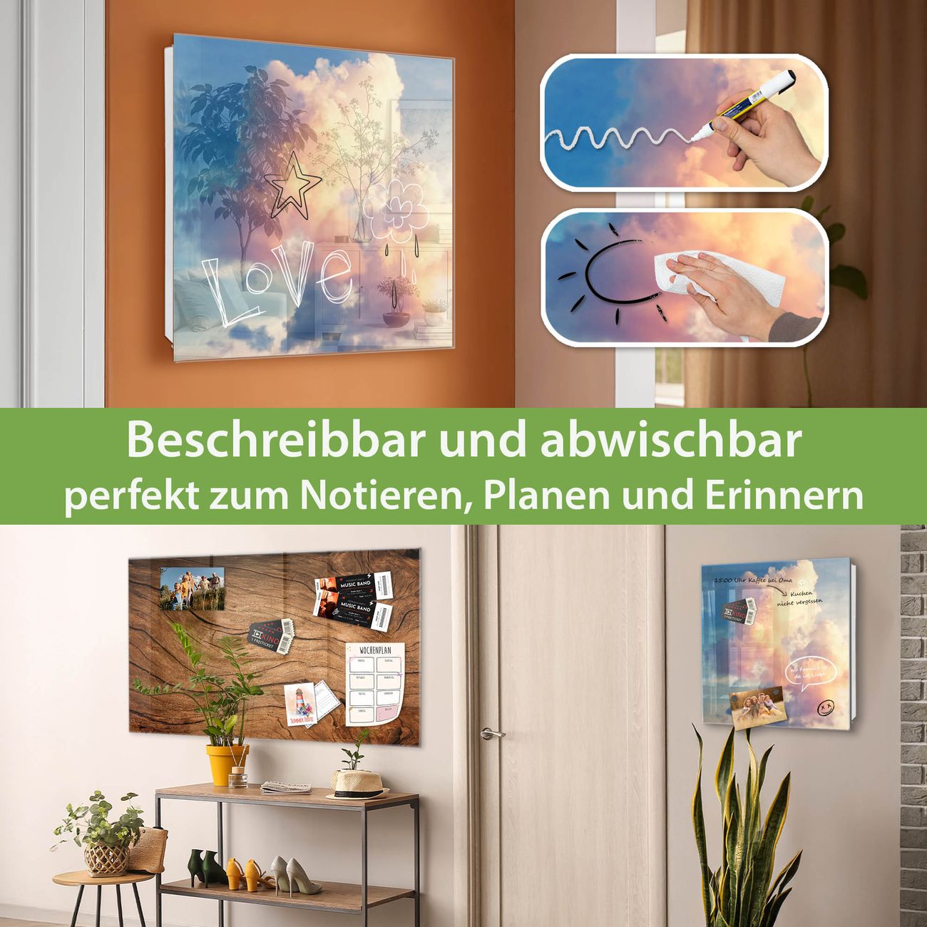 <p>Bringe Ordnung und Eleganz in deinen Eingangsbereich mit dem <strong>banjado Schlu00fcsselkasten Motiv Motiv Wolken 10</strong>. Die moderne Schlu00fcsselbox kombiniert funktionales Design mit hochwertiger Verarbeitung und wird so zu einem echten Hingucker in Flur, Bu00fcro oder Ferienwohnung.<br /><br /></p><h3>Vorteile im u00dcberblick</h3><p>✅ Stilvolle Schlu00fcsselaufbewahrung mit Glasfront im Motiv <strong>Motiv Wolken 10</strong><br />✅ Platz fu00fcr bis zu 50 Schlu00fcssel, ideal fu00fcr Haushalt, Bu00fcro oder Gewerbe<br />✅ Kompakte Mau00dfe: 30 x 30 x 5 cm<br />✅ Einfache Wandmontage inkl. Befestigungsmaterial<br />✅ Magnetisch und mit Kreidestift beschreibbar, gehu00e4rtetes Glas, rechts angeschlagene Tu00fcr<br /><br /></p><h3>Ordnung und Design in einem</h3><p>Der <strong>Design-Schlu00fcsselkasten Motiv Motiv Wolken 10</strong> bietet Platz fu00fcr bis zu 50 Schlu00fcssel, die auf 5 stabilen Reihen mit je 10 Haken u00fcbersichtlich verstaut werden. Mit seinen kompakten Mau00dfen von 30 x 30 x 5 cm passt die Schlu00fcsselbox perfekt auch in kleinere Ru00e4ume. Der weiu00df lackierte Stahlkorpus mit rechts angeschlagenem Tu00fcrscharnier harmoniert mit der Glasfront und fu00fcgt sich nahtlos in jedes Wohnambiente ein.<br /><br /></p><h3>Vielseitig einsetzbar</h3><p>Ob als <strong>Schlu00fcsselorganizer fu00fcr Zuhause</strong> oder als <strong>praktische Lu00f6sung fu00fcr Bu00fcros, Praxen und Gewerbe</strong>, der banjado Schlu00fcsselkasten sorgt fu00fcr Ordnung und u00dcbersicht. Dank der magnetischen, mit Kreidestiften beschreibbaren Glasfront kannst du Notizen anheften oder Termine direkt auf der Oberflu00e4che festhalten.<br /><br /></p><h3>Einfache Montage</h3><p>Die <strong>Schlu00fcsselbox Motiv Motiv Wolken 10</strong> zur Wandmontage wird inklusive Befestigungsmaterial geliefert und ist schnell angebracht. So hast du deine Schlu00fcssel jederzeit griffbereit und zugleich stilvoll verstaut.<br /><br /></p><h3>Fazit: Praktisch, elegant und langlebig</h3><p>Mit diesem <strong>banjado Schlu00fcsselkasten Motiv Motiv Wolken 10</strong> kombinierst du praktische Aufbewahrung mit stilvollem Wohndesign. Ob privat oder geschu00e4ftlich, die Schlu00fcsselbox sorgt fu00fcr <strong>mehr Ordnung, u00dcbersicht und ein wohnliches Ambiente</strong>.</p>