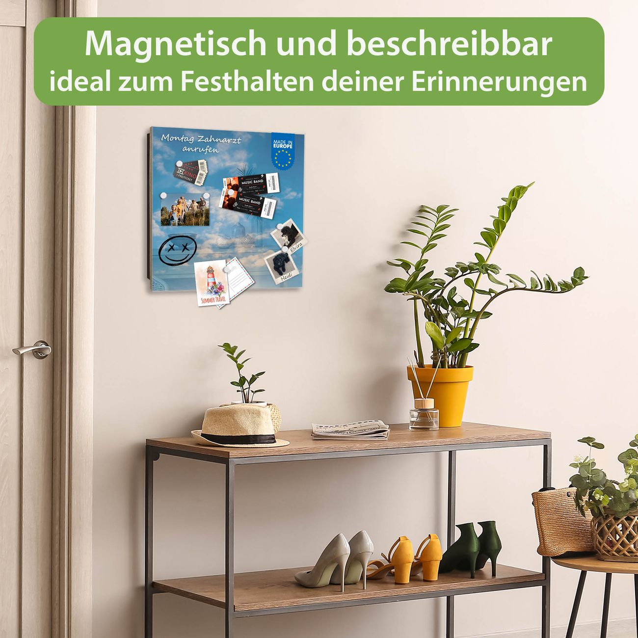 ✅ Magnetisch und mit Kreidestift beschreibbar, gehärtetes Glas, rechts angeschlagene TürOrdnung und Design in einem