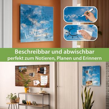 Bringe Ordnung und Eleganz in deinen Eingangsbereich mit dem banjado Schlüsselkasten Motiv Motiv Wolken 11. Die moderne Schlüsselbox kombiniert funktionales Design mit hochwertiger Verarbeitung und wird so zu einem echten Hingucker in Flur, Büro oder Ferienwohnung. ✅ Stilvolle Schlüsselaufbewahrung mit Glasfront im Motiv Motiv Wolken 11 Der Design-Schlüsselkasten Motiv Motiv Wolken 11 bietet Platz für bis zu 50 Schlüssel, die auf 5 stabilen Reihen mit je 10 Haken übersichtlich verstaut werden. Mit seinen kompakten Maßen von 30 x 30 x 5 cm passt die Schlüsselbox perfekt auch in kleinere Räume. Der schwarz lackierte Stahlkorpus mit rechts angeschlagenem Türscharnier harmoniert mit der Glasfront und fügt sich nahtlos in jedes Wohnambiente ein. Ob als Schlüsselorganizer für Zuhause oder als praktische Lösung für Büros, Praxen und Gewerbe, der banjado Schlüsselkasten sorgt für Ordnung und Übersicht. Dank der magnetischen, mit Kreidestiften beschreibbaren Glasfront kannst du Notizen anheften oder Termine direkt auf der Oberfläche festhalten. Die Schlüsselbox Motiv Motiv Wolken 11 zur Wandmontage wird inklusive Befestigungsmaterial geliefert und ist schnell angebracht. So hast du deine Schlüssel jederzeit griffbereit und zugleich stilvoll verstaut. Mit diesem banjado Schlüsselkasten Motiv Motiv Wolken 11 kombinierst du praktische Aufbewahrung mit stilvollem Wohndesign. Ob privat oder geschäftlich, die Schlüsselbox sorgt für mehr Ordnung, Übersicht und ein wohnliches Ambiente.Vorteile im Überblick