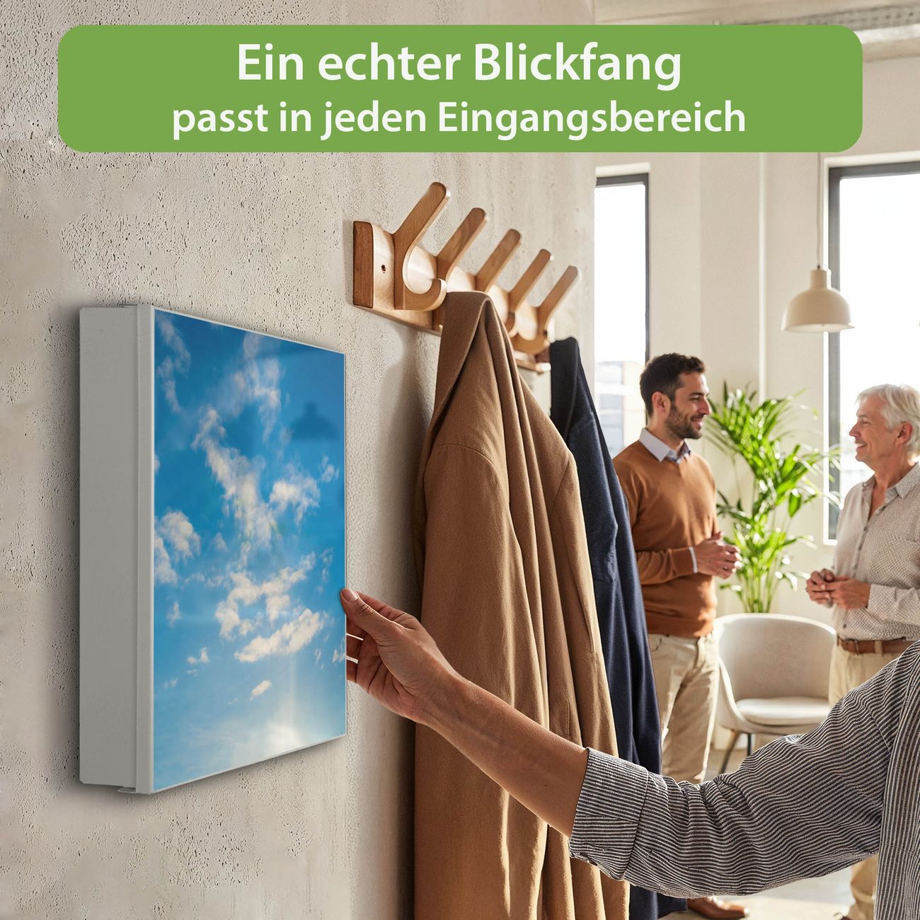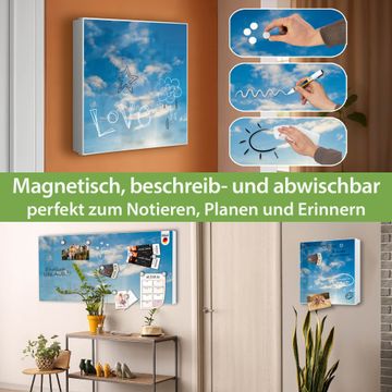 Bringe Ordnung und Eleganz in deinen Eingangsbereich mit dem banjado Schlüsselkasten Motiv Motiv Wolken 11. Die moderne Schlüsselbox kombiniert funktionales Design mit hochwertiger Verarbeitung und wird so zu einem echten Hingucker in Flur, Büro oder Ferienwohnung. ✅ Stilvolle Schlüsselaufbewahrung mit Motiv Motiv Wolken 11 Der Design-Schlüsselkasten Motiv Motiv Wolken 11 bietet Platz für bis zu 32 Schlüssel, die auf 4 stabilen Reihen mit je 8 Haken übersichtlich verstaut werden. Mit seinen kompakten Maßen von 30 x 30 x 5 cm passt die Schlüsselbox perfekt auch in kleinere Räume. Der weiß lackierte Stahlkorpus mit links angeschlagenem Türscharnier harmoniert mit gedruckten Folie auf der Front und fügt sich nahtlos in jedes Wohnambiente ein. Ob als Schlüsselorganizer für Zuhause oder als praktische Lösung für Büros, Praxen und Gewerbe, der banjado Schlüsselkasten sorgt für Ordnung und Übersicht. Dank der magnetischen, mit Kreidestiften beschreibbaren Folie auf der Front kannst du Notizen anheften oder Termine direkt auf der Oberfläche festhalten. Die Schlüsselbox Motiv Motiv Wolken 11 zur Wandmontage wird inklusive Befestigungsmaterial geliefert und ist schnell angebracht. So hast du deine Schlüssel jederzeit griffbereit und zugleich stilvoll verstaut. Mit diesem banjado Schlüsselkasten Motiv Motiv Wolken 11 kombinierst du praktische Aufbewahrung mit stilvollem Wohndesign. Ob privat oder geschäftlich, die Schlüsselbox sorgt für mehr Ordnung, Übersicht und ein wohnliches Ambiente.Vorteile im Überblick