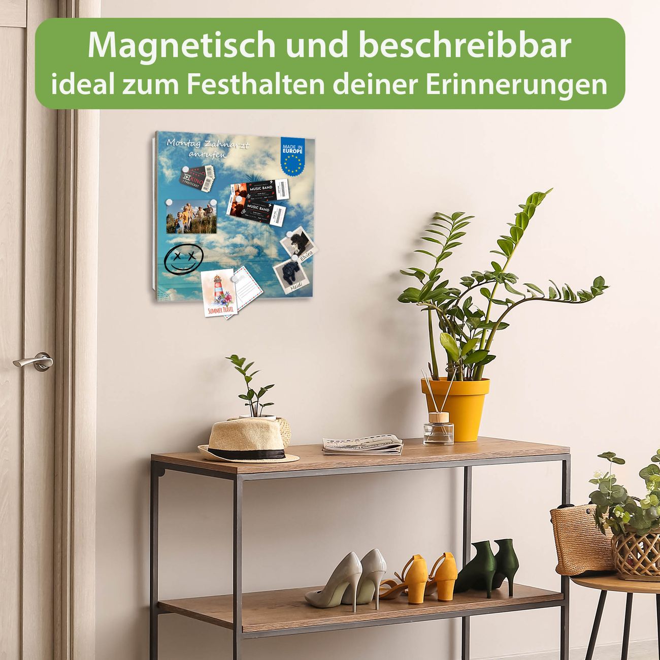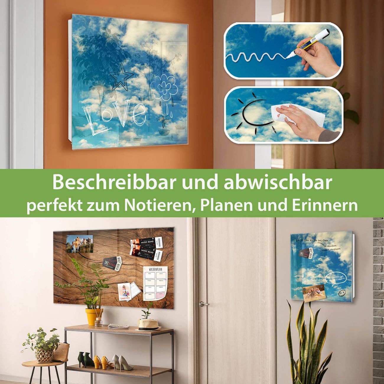 ✅ Magnetisch und mit Kreidestift beschreibbar, gehärtetes Glas, links angeschlagene TürOrdnung und Design in einem