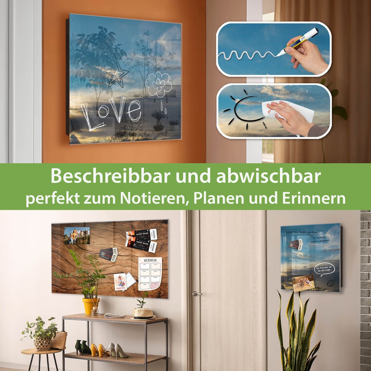 ✅ Magnetisch und mit Kreidestift beschreibbar, gehärtetes Glas, rechts angeschlagene TürOrdnung und Design in einem