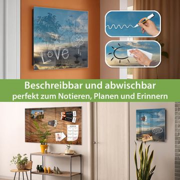 Bringe Ordnung und Eleganz in deinen Eingangsbereich mit dem banjado Schlüsselkasten Motiv Motiv Wolken 7. Die moderne Schlüsselbox kombiniert funktionales Design mit hochwertiger Verarbeitung und wird so zu einem echten Hingucker in Flur, Büro oder Ferienwohnung. ✅ Stilvolle Schlüsselaufbewahrung mit Glasfront im Motiv Motiv Wolken 7 Der Design-Schlüsselkasten Motiv Motiv Wolken 7 bietet Platz für bis zu 50 Schlüssel, die auf 5 stabilen Reihen mit je 10 Haken übersichtlich verstaut werden. Mit seinen kompakten Maßen von 30 x 30 x 5 cm passt die Schlüsselbox perfekt auch in kleinere Räume. Der schwarz lackierte Stahlkorpus mit rechts angeschlagenem Türscharnier harmoniert mit der Glasfront und fügt sich nahtlos in jedes Wohnambiente ein. Ob als Schlüsselorganizer für Zuhause oder als praktische Lösung für Büros, Praxen und Gewerbe, der banjado Schlüsselkasten sorgt für Ordnung und Übersicht. Dank der magnetischen, mit Kreidestiften beschreibbaren Glasfront kannst du Notizen anheften oder Termine direkt auf der Oberfläche festhalten. Die Schlüsselbox Motiv Motiv Wolken 7 zur Wandmontage wird inklusive Befestigungsmaterial geliefert und ist schnell angebracht. So hast du deine Schlüssel jederzeit griffbereit und zugleich stilvoll verstaut. Mit diesem banjado Schlüsselkasten Motiv Motiv Wolken 7 kombinierst du praktische Aufbewahrung mit stilvollem Wohndesign. Ob privat oder geschäftlich, die Schlüsselbox sorgt für mehr Ordnung, Übersicht und ein wohnliches Ambiente.Vorteile im Überblick