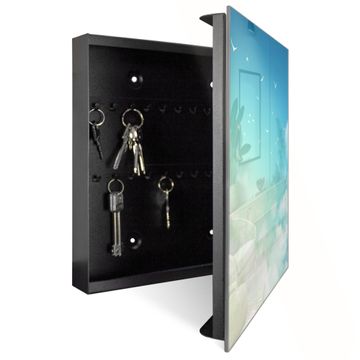 Bringe Ordnung und Eleganz in deinen Eingangsbereich mit dem banjado Schlüsselkasten Motiv Motiv Wolken 8. Die moderne Schlüsselbox kombiniert funktionales Design mit hochwertiger Verarbeitung und wird so zu einem echten Hingucker in Flur, Büro oder Ferienwohnung. ✅ Stilvolle Schlüsselaufbewahrung mit Glasfront im Motiv Motiv Wolken 8 Der Design-Schlüsselkasten Motiv Motiv Wolken 8 bietet Platz für bis zu 50 Schlüssel, die auf 5 stabilen Reihen mit je 10 Haken übersichtlich verstaut werden. Mit seinen kompakten Maßen von 30 x 30 x 5 cm passt die Schlüsselbox perfekt auch in kleinere Räume. Der schwarz lackierte Stahlkorpus mit rechts angeschlagenem Türscharnier harmoniert mit der Glasfront und fügt sich nahtlos in jedes Wohnambiente ein. Ob als Schlüsselorganizer für Zuhause oder als praktische Lösung für Büros, Praxen und Gewerbe, der banjado Schlüsselkasten sorgt für Ordnung und Übersicht. Dank der magnetischen, mit Kreidestiften beschreibbaren Glasfront kannst du Notizen anheften oder Termine direkt auf der Oberfläche festhalten. Die Schlüsselbox Motiv Motiv Wolken 8 zur Wandmontage wird inklusive Befestigungsmaterial geliefert und ist schnell angebracht. So hast du deine Schlüssel jederzeit griffbereit und zugleich stilvoll verstaut. Mit diesem banjado Schlüsselkasten Motiv Motiv Wolken 8 kombinierst du praktische Aufbewahrung mit stilvollem Wohndesign. Ob privat oder geschäftlich, die Schlüsselbox sorgt für mehr Ordnung, Übersicht und ein wohnliches Ambiente.Vorteile im Überblick
