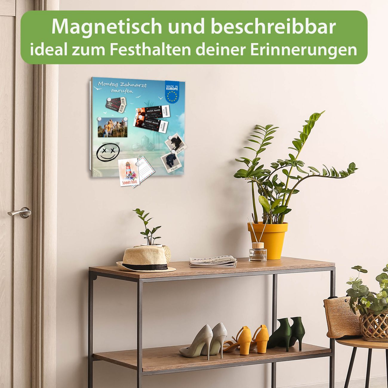 ✅ Magnetisch und mit Kreidestift beschreibbar, gehärtetes Glas, rechts angeschlagene TürOrdnung und Design in einem