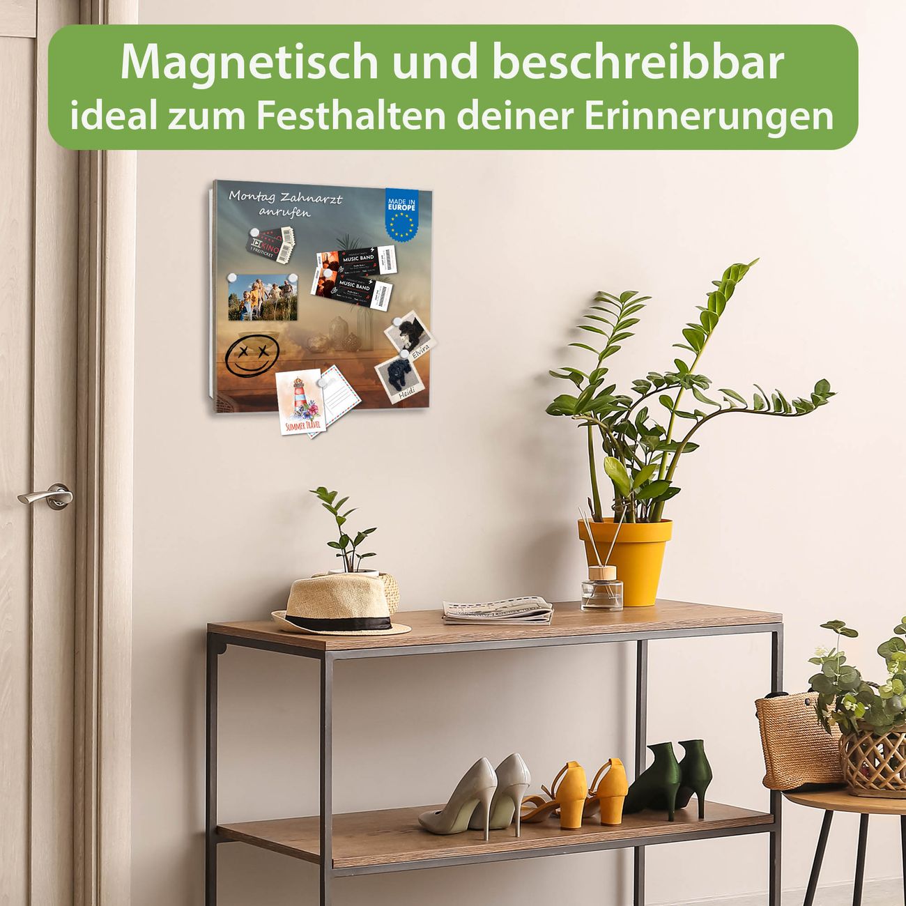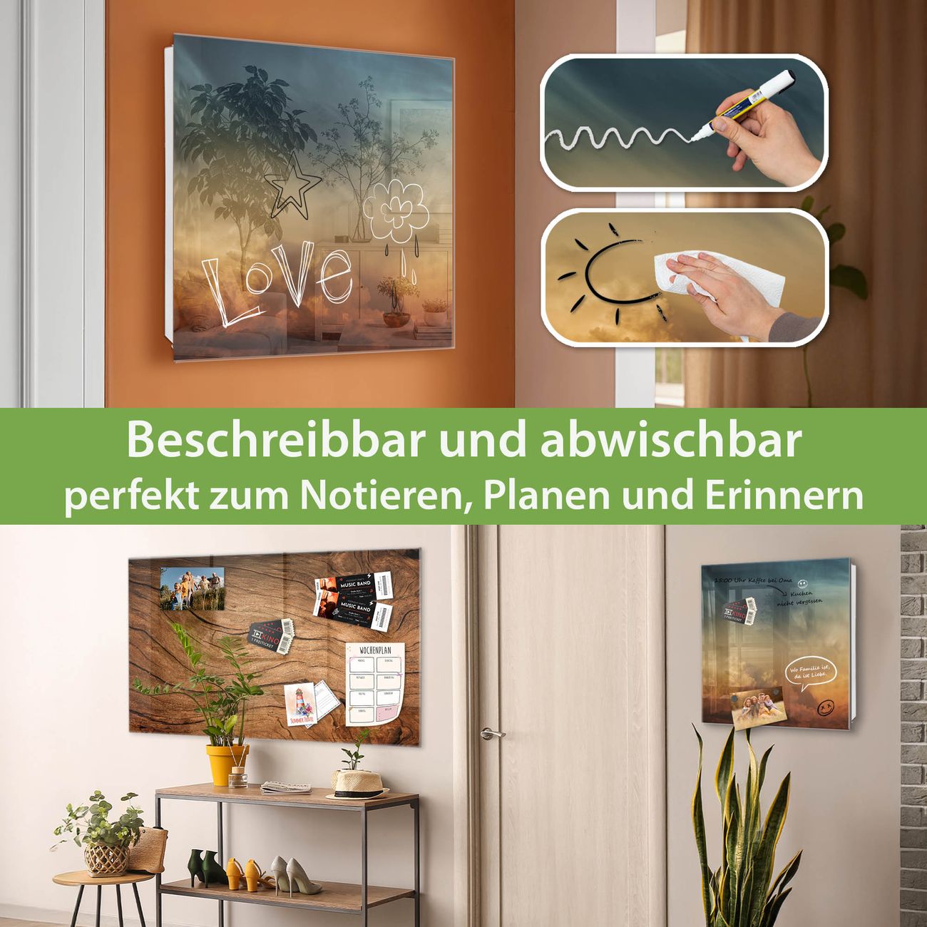 ✅ Magnetisch und mit Kreidestift beschreibbar, gehärtetes Glas, links angeschlagene TürOrdnung und Design in einem