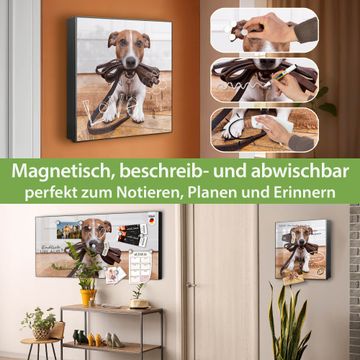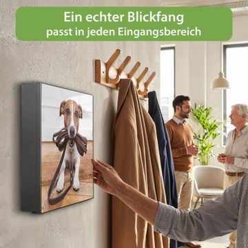 Bringe Ordnung und Eleganz in deinen Eingangsbereich mit dem banjado Schlüsselkasten Motiv Motiv Wowka. Die moderne Schlüsselbox kombiniert funktionales Design mit hochwertiger Verarbeitung und wird so zu einem echten Hingucker in Flur, Büro oder Ferienwohnung. ✅ Stilvolle Schlüsselaufbewahrung mit Motiv Motiv Wowka Der Design-Schlüsselkasten Motiv Motiv Wowka bietet Platz für bis zu 32 Schlüssel, die auf 4 stabilen Reihen mit je 8 Haken übersichtlich verstaut werden. Mit seinen kompakten Maßen von 30 x 30 x 5 cm passt die Schlüsselbox perfekt auch in kleinere Räume. Der schwarz lackierte Stahlkorpus mit rechts angeschlagenem Türscharnier harmoniert mit gedruckten Folie auf der Front und fügt sich nahtlos in jedes Wohnambiente ein. Ob als Schlüsselorganizer für Zuhause oder als praktische Lösung für Büros, Praxen und Gewerbe, der banjado Schlüsselkasten sorgt für Ordnung und Übersicht. Dank der magnetischen, mit Kreidestiften beschreibbaren Folie auf der Front kannst du Notizen anheften oder Termine direkt auf der Oberfläche festhalten. Die Schlüsselbox Motiv Motiv Wowka zur Wandmontage wird inklusive Befestigungsmaterial geliefert und ist schnell angebracht. So hast du deine Schlüssel jederzeit griffbereit und zugleich stilvoll verstaut. Mit diesem banjado Schlüsselkasten Motiv Motiv Wowka kombinierst du praktische Aufbewahrung mit stilvollem Wohndesign. Ob privat oder geschäftlich, die Schlüsselbox sorgt für mehr Ordnung, Übersicht und ein wohnliches Ambiente.Vorteile im Überblick