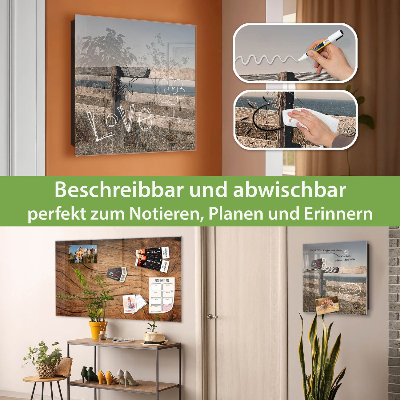 ✅ Magnetisch und mit Kreidestift beschreibbar, gehärtetes Glas, links angeschlagene TürOrdnung und Design in einem