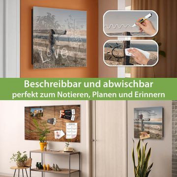 Bringe Ordnung und Eleganz in deinen Eingangsbereich mit dem banjado Schlüsselkasten Motiv Motiv Zaun am Meer. Die moderne Schlüsselbox kombiniert funktionales Design mit hochwertiger Verarbeitung und wird so zu einem echten Hingucker in Flur, Büro oder Ferienwohnung. ✅ Stilvolle Schlüsselaufbewahrung mit Glasfront im Motiv Motiv Zaun am Meer Der Design-Schlüsselkasten Motiv Motiv Zaun am Meer bietet Platz für bis zu 50 Schlüssel, die auf 5 stabilen Reihen mit je 10 Haken übersichtlich verstaut werden. Mit seinen kompakten Maßen von 30 x 30 x 5 cm passt die Schlüsselbox perfekt auch in kleinere Räume. Der schwarz lackierte Stahlkorpus mit rechts angeschlagenem Türscharnier harmoniert mit der Glasfront und fügt sich nahtlos in jedes Wohnambiente ein. Ob als Schlüsselorganizer für Zuhause oder als praktische Lösung für Büros, Praxen und Gewerbe, der banjado Schlüsselkasten sorgt für Ordnung und Übersicht. Dank der magnetischen, mit Kreidestiften beschreibbaren Glasfront kannst du Notizen anheften oder Termine direkt auf der Oberfläche festhalten. Die Schlüsselbox Motiv Motiv Zaun am Meer zur Wandmontage wird inklusive Befestigungsmaterial geliefert und ist schnell angebracht. So hast du deine Schlüssel jederzeit griffbereit und zugleich stilvoll verstaut. Mit diesem banjado Schlüsselkasten Motiv Motiv Zaun am Meer kombinierst du praktische Aufbewahrung mit stilvollem Wohndesign. Ob privat oder geschäftlich, die Schlüsselbox sorgt für mehr Ordnung, Übersicht und ein wohnliches Ambiente.Vorteile im Überblick