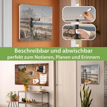 Bringe Ordnung und Eleganz in deinen Eingangsbereich mit dem banjado Schlüsselkasten Motiv Motiv Zaun am Meer. Die moderne Schlüsselbox kombiniert funktionales Design mit hochwertiger Verarbeitung und wird so zu einem echten Hingucker in Flur, Büro oder Ferienwohnung. ✅ Stilvolle Schlüsselaufbewahrung mit Glasfront im Motiv Motiv Zaun am Meer Der Design-Schlüsselkasten Motiv Motiv Zaun am Meer bietet Platz für bis zu 50 Schlüssel, die auf 5 stabilen Reihen mit je 10 Haken übersichtlich verstaut werden. Mit seinen kompakten Maßen von 30 x 30 x 5 cm passt die Schlüsselbox perfekt auch in kleinere Räume. Der weiß lackierte Stahlkorpus mit rechts angeschlagenem Türscharnier harmoniert mit der Glasfront und fügt sich nahtlos in jedes Wohnambiente ein. Ob als Schlüsselorganizer für Zuhause oder als praktische Lösung für Büros, Praxen und Gewerbe, der banjado Schlüsselkasten sorgt für Ordnung und Übersicht. Dank der magnetischen, mit Kreidestiften beschreibbaren Glasfront kannst du Notizen anheften oder Termine direkt auf der Oberfläche festhalten. Die Schlüsselbox Motiv Motiv Zaun am Meer zur Wandmontage wird inklusive Befestigungsmaterial geliefert und ist schnell angebracht. So hast du deine Schlüssel jederzeit griffbereit und zugleich stilvoll verstaut. Mit diesem banjado Schlüsselkasten Motiv Motiv Zaun am Meer kombinierst du praktische Aufbewahrung mit stilvollem Wohndesign. Ob privat oder geschäftlich, die Schlüsselbox sorgt für mehr Ordnung, Übersicht und ein wohnliches Ambiente.Vorteile im Überblick