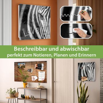Bringe Ordnung und Eleganz in deinen Eingangsbereich mit dem banjado Schlüsselkasten Motiv Motiv Zebra En Face. Die moderne Schlüsselbox kombiniert funktionales Design mit hochwertiger Verarbeitung und wird so zu einem echten Hingucker in Flur, Büro oder Ferienwohnung. ✅ Stilvolle Schlüsselaufbewahrung mit Glasfront im Motiv Motiv Zebra En Face Der Design-Schlüsselkasten Motiv Motiv Zebra En Face bietet Platz für bis zu 50 Schlüssel, die auf 5 stabilen Reihen mit je 10 Haken übersichtlich verstaut werden. Mit seinen kompakten Maßen von 30 x 30 x 5 cm passt die Schlüsselbox perfekt auch in kleinere Räume. Der weiß lackierte Stahlkorpus mit rechts angeschlagenem Türscharnier harmoniert mit der Glasfront und fügt sich nahtlos in jedes Wohnambiente ein. Ob als Schlüsselorganizer für Zuhause oder als praktische Lösung für Büros, Praxen und Gewerbe, der banjado Schlüsselkasten sorgt für Ordnung und Übersicht. Dank der magnetischen, mit Kreidestiften beschreibbaren Glasfront kannst du Notizen anheften oder Termine direkt auf der Oberfläche festhalten. Die Schlüsselbox Motiv Motiv Zebra En Face zur Wandmontage wird inklusive Befestigungsmaterial geliefert und ist schnell angebracht. So hast du deine Schlüssel jederzeit griffbereit und zugleich stilvoll verstaut. Mit diesem banjado Schlüsselkasten Motiv Motiv Zebra En Face kombinierst du praktische Aufbewahrung mit stilvollem Wohndesign. Ob privat oder geschäftlich, die Schlüsselbox sorgt für mehr Ordnung, Übersicht und ein wohnliches Ambiente.Vorteile im Überblick
