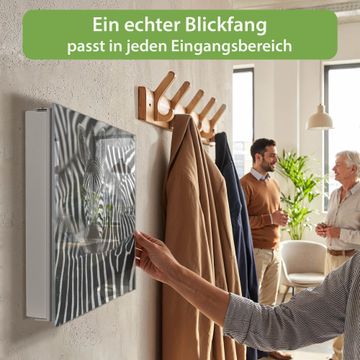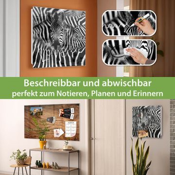 Bringe Ordnung und Eleganz in deinen Eingangsbereich mit dem banjado Schlüsselkasten Motiv Motiv Zebras. Die moderne Schlüsselbox kombiniert funktionales Design mit hochwertiger Verarbeitung und wird so zu einem echten Hingucker in Flur, Büro oder Ferienwohnung. ✅ Stilvolle Schlüsselaufbewahrung mit Glasfront im Motiv Motiv Zebras Der Design-Schlüsselkasten Motiv Motiv Zebras bietet Platz für bis zu 50 Schlüssel, die auf 5 stabilen Reihen mit je 10 Haken übersichtlich verstaut werden. Mit seinen kompakten Maßen von 30 x 30 x 5 cm passt die Schlüsselbox perfekt auch in kleinere Räume. Der weiß lackierte Stahlkorpus mit rechts angeschlagenem Türscharnier harmoniert mit der Glasfront und fügt sich nahtlos in jedes Wohnambiente ein. Ob als Schlüsselorganizer für Zuhause oder als praktische Lösung für Büros, Praxen und Gewerbe, der banjado Schlüsselkasten sorgt für Ordnung und Übersicht. Dank der magnetischen, mit Kreidestiften beschreibbaren Glasfront kannst du Notizen anheften oder Termine direkt auf der Oberfläche festhalten. Die Schlüsselbox Motiv Motiv Zebras zur Wandmontage wird inklusive Befestigungsmaterial geliefert und ist schnell angebracht. So hast du deine Schlüssel jederzeit griffbereit und zugleich stilvoll verstaut. Mit diesem banjado Schlüsselkasten Motiv Motiv Zebras kombinierst du praktische Aufbewahrung mit stilvollem Wohndesign. Ob privat oder geschäftlich, die Schlüsselbox sorgt für mehr Ordnung, Übersicht und ein wohnliches Ambiente.Vorteile im Überblick