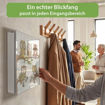 Bringe Ordnung und Eleganz in deinen Eingangsbereich mit dem banjado Schlüsselkasten Motiv Motiv Zehn-Augen-Prinzip. Die moderne Schlüsselbox kombiniert funktionales Design mit hochwertiger Verarbeitung und wird so zu einem echten Hingucker in Flur, Büro oder Ferienwohnung. ✅ Stilvolle Schlüsselaufbewahrung mit Glasfront im Motiv Motiv Zehn-Augen-Prinzip Der Design-Schlüsselkasten Motiv Motiv Zehn-Augen-Prinzip bietet Platz für bis zu 50 Schlüssel, die auf 5 stabilen Reihen mit je 10 Haken übersichtlich verstaut werden. Mit seinen kompakten Maßen von 30 x 30 x 5 cm passt die Schlüsselbox perfekt auch in kleinere Räume. Der weiß lackierte Stahlkorpus mit rechts angeschlagenem Türscharnier harmoniert mit der Glasfront und fügt sich nahtlos in jedes Wohnambiente ein. Ob als Schlüsselorganizer für Zuhause oder als praktische Lösung für Büros, Praxen und Gewerbe, der banjado Schlüsselkasten sorgt für Ordnung und Übersicht. Dank der magnetischen, mit Kreidestiften beschreibbaren Glasfront kannst du Notizen anheften oder Termine direkt auf der Oberfläche festhalten. Die Schlüsselbox Motiv Motiv Zehn-Augen-Prinzip zur Wandmontage wird inklusive Befestigungsmaterial geliefert und ist schnell angebracht. So hast du deine Schlüssel jederzeit griffbereit und zugleich stilvoll verstaut. Mit diesem banjado Schlüsselkasten Motiv Motiv Zehn-Augen-Prinzip kombinierst du praktische Aufbewahrung mit stilvollem Wohndesign. Ob privat oder geschäftlich, die Schlüsselbox sorgt für mehr Ordnung, Übersicht und ein wohnliches Ambiente.Vorteile im Überblick