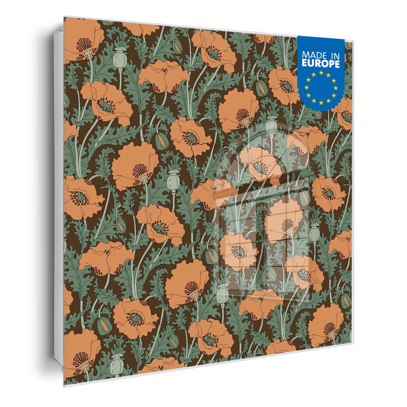 Schlüsselkasten Glas Motiv Zeichnung Mohn