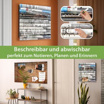 Bringe Ordnung und Eleganz in deinen Eingangsbereich mit dem banjado Schlüsselkasten Motiv Motiv Zeitungen. Die moderne Schlüsselbox kombiniert funktionales Design mit hochwertiger Verarbeitung und wird so zu einem echten Hingucker in Flur, Büro oder Ferienwohnung. ✅ Stilvolle Schlüsselaufbewahrung mit Glasfront im Motiv Motiv Zeitungen Der Design-Schlüsselkasten Motiv Motiv Zeitungen bietet Platz für bis zu 50 Schlüssel, die auf 5 stabilen Reihen mit je 10 Haken übersichtlich verstaut werden. Mit seinen kompakten Maßen von 30 x 30 x 5 cm passt die Schlüsselbox perfekt auch in kleinere Räume. Der schwarz lackierte Stahlkorpus mit rechts angeschlagenem Türscharnier harmoniert mit der Glasfront und fügt sich nahtlos in jedes Wohnambiente ein. Ob als Schlüsselorganizer für Zuhause oder als praktische Lösung für Büros, Praxen und Gewerbe, der banjado Schlüsselkasten sorgt für Ordnung und Übersicht. Dank der magnetischen, mit Kreidestiften beschreibbaren Glasfront kannst du Notizen anheften oder Termine direkt auf der Oberfläche festhalten. Die Schlüsselbox Motiv Motiv Zeitungen zur Wandmontage wird inklusive Befestigungsmaterial geliefert und ist schnell angebracht. So hast du deine Schlüssel jederzeit griffbereit und zugleich stilvoll verstaut. Mit diesem banjado Schlüsselkasten Motiv Motiv Zeitungen kombinierst du praktische Aufbewahrung mit stilvollem Wohndesign. Ob privat oder geschäftlich, die Schlüsselbox sorgt für mehr Ordnung, Übersicht und ein wohnliches Ambiente.Vorteile im Überblick