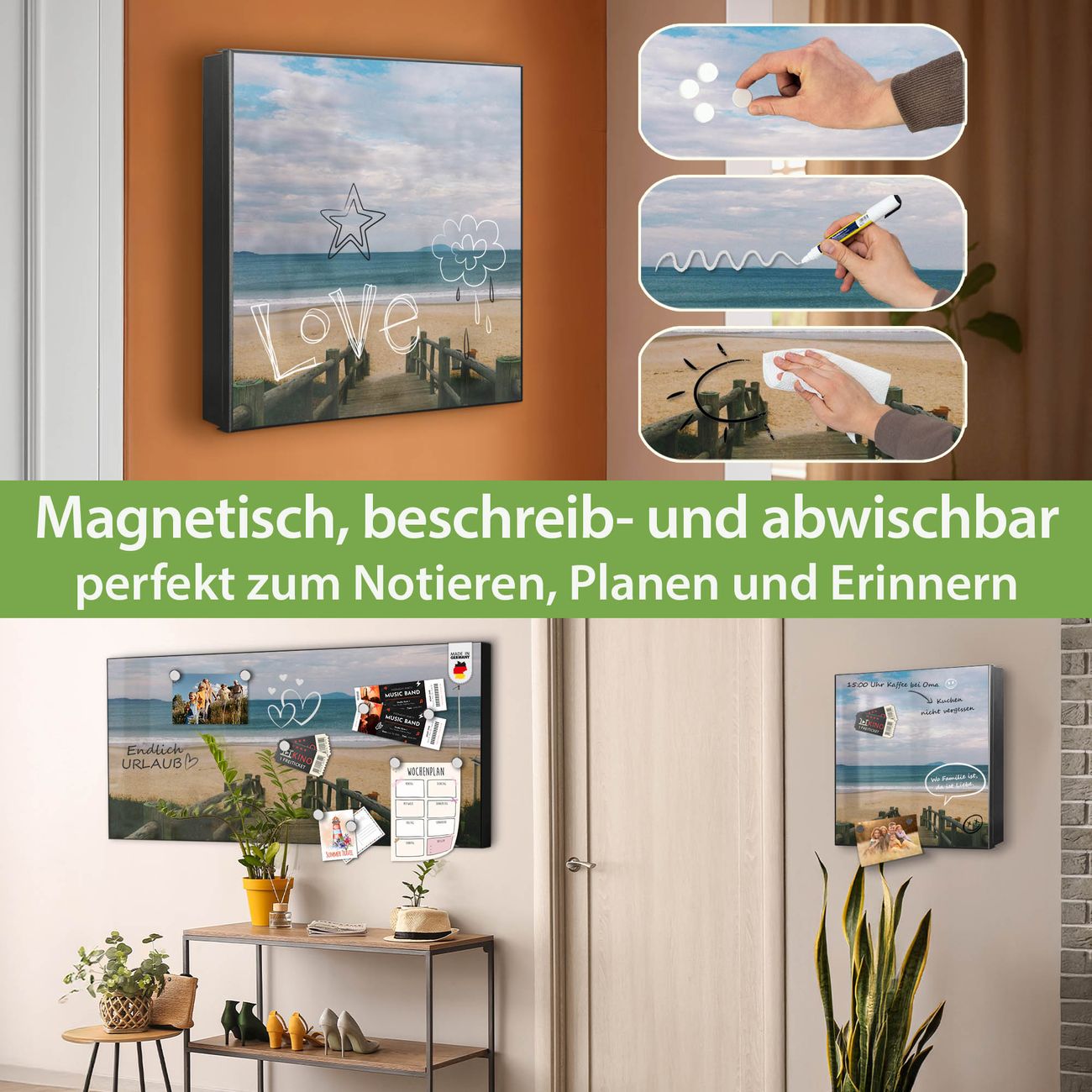 ✅ Magnetisch und mit Kreidestift beschreibbar, rechts angeschlagene TürOrdnung und Design in einem