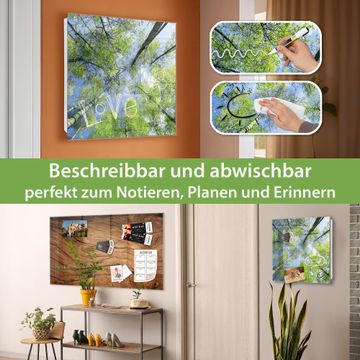 Bringe Ordnung und Eleganz in deinen Eingangsbereich mit dem banjado Schlüsselkasten Motiv Motiv Zwischen Bäumen 3. Die moderne Schlüsselbox kombiniert funktionales Design mit hochwertiger Verarbeitung und wird so zu einem echten Hingucker in Flur, Büro oder Ferienwohnung. ✅ Stilvolle Schlüsselaufbewahrung mit Glasfront im Motiv Motiv Zwischen Bäumen 3 Der Design-Schlüsselkasten Motiv Motiv Zwischen Bäumen 3 bietet Platz für bis zu 50 Schlüssel, die auf 5 stabilen Reihen mit je 10 Haken übersichtlich verstaut werden. Mit seinen kompakten Maßen von 30 x 30 x 5 cm passt die Schlüsselbox perfekt auch in kleinere Räume. Der weiß lackierte Stahlkorpus mit rechts angeschlagenem Türscharnier harmoniert mit der Glasfront und fügt sich nahtlos in jedes Wohnambiente ein. Ob als Schlüsselorganizer für Zuhause oder als praktische Lösung für Büros, Praxen und Gewerbe, der banjado Schlüsselkasten sorgt für Ordnung und Übersicht. Dank der magnetischen, mit Kreidestiften beschreibbaren Glasfront kannst du Notizen anheften oder Termine direkt auf der Oberfläche festhalten. Die Schlüsselbox Motiv Motiv Zwischen Bäumen 3 zur Wandmontage wird inklusive Befestigungsmaterial geliefert und ist schnell angebracht. So hast du deine Schlüssel jederzeit griffbereit und zugleich stilvoll verstaut. Mit diesem banjado Schlüsselkasten Motiv Motiv Zwischen Bäumen 3 kombinierst du praktische Aufbewahrung mit stilvollem Wohndesign. Ob privat oder geschäftlich, die Schlüsselbox sorgt für mehr Ordnung, Übersicht und ein wohnliches Ambiente.Vorteile im Überblick