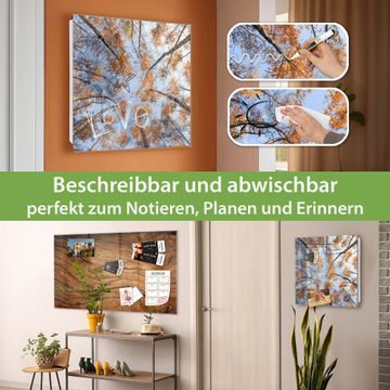 Bringe Ordnung und Eleganz in deinen Eingangsbereich mit dem banjado Schlüsselkasten Motiv Motiv Zwischen Bäumen 4. Die moderne Schlüsselbox kombiniert funktionales Design mit hochwertiger Verarbeitung und wird so zu einem echten Hingucker in Flur, Büro oder Ferienwohnung. ✅ Stilvolle Schlüsselaufbewahrung mit Glasfront im Motiv Motiv Zwischen Bäumen 4 Der Design-Schlüsselkasten Motiv Motiv Zwischen Bäumen 4 bietet Platz für bis zu 50 Schlüssel, die auf 5 stabilen Reihen mit je 10 Haken übersichtlich verstaut werden. Mit seinen kompakten Maßen von 30 x 30 x 5 cm passt die Schlüsselbox perfekt auch in kleinere Räume. Der weiß lackierte Stahlkorpus mit rechts angeschlagenem Türscharnier harmoniert mit der Glasfront und fügt sich nahtlos in jedes Wohnambiente ein. Ob als Schlüsselorganizer für Zuhause oder als praktische Lösung für Büros, Praxen und Gewerbe, der banjado Schlüsselkasten sorgt für Ordnung und Übersicht. Dank der magnetischen, mit Kreidestiften beschreibbaren Glasfront kannst du Notizen anheften oder Termine direkt auf der Oberfläche festhalten. Die Schlüsselbox Motiv Motiv Zwischen Bäumen 4 zur Wandmontage wird inklusive Befestigungsmaterial geliefert und ist schnell angebracht. So hast du deine Schlüssel jederzeit griffbereit und zugleich stilvoll verstaut. Mit diesem banjado Schlüsselkasten Motiv Motiv Zwischen Bäumen 4 kombinierst du praktische Aufbewahrung mit stilvollem Wohndesign. Ob privat oder geschäftlich, die Schlüsselbox sorgt für mehr Ordnung, Übersicht und ein wohnliches Ambiente.Vorteile im Überblick