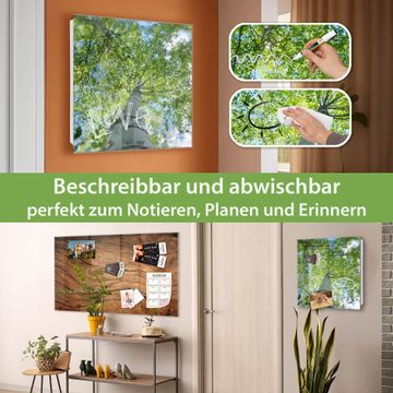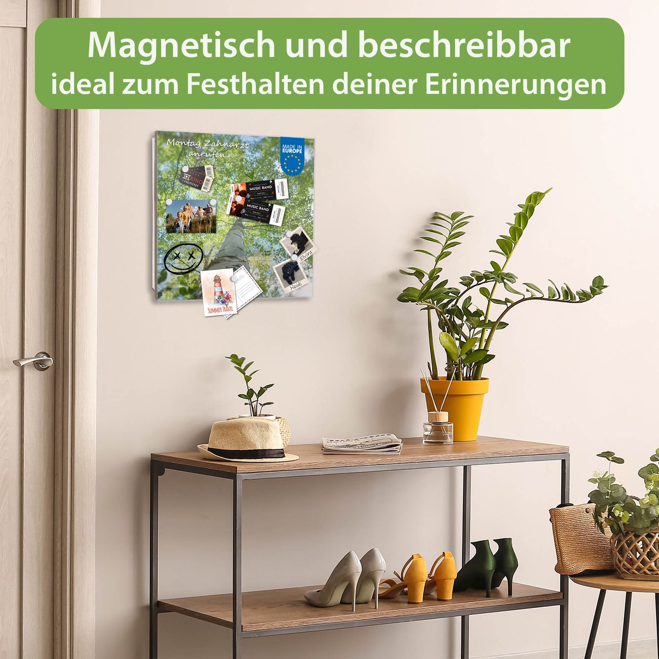 Bringe Ordnung und Eleganz in deinen Eingangsbereich mit dem banjado Schlüsselkasten Motiv Motiv Zwischen Bäumen 5. Die moderne Schlüsselbox kombiniert funktionales Design mit hochwertiger Verarbeitung und wird so zu einem echten Hingucker in Flur, Büro oder Ferienwohnung. ✅ Stilvolle Schlüsselaufbewahrung mit Glasfront im Motiv Motiv Zwischen Bäumen 5 Der Design-Schlüsselkasten Motiv Motiv Zwischen Bäumen 5 bietet Platz für bis zu 50 Schlüssel, die auf 5 stabilen Reihen mit je 10 Haken übersichtlich verstaut werden. Mit seinen kompakten Maßen von 30 x 30 x 5 cm passt die Schlüsselbox perfekt auch in kleinere Räume. Der weiß lackierte Stahlkorpus mit rechts angeschlagenem Türscharnier harmoniert mit der Glasfront und fügt sich nahtlos in jedes Wohnambiente ein. Ob als Schlüsselorganizer für Zuhause oder als praktische Lösung für Büros, Praxen und Gewerbe, der banjado Schlüsselkasten sorgt für Ordnung und Übersicht. Dank der magnetischen, mit Kreidestiften beschreibbaren Glasfront kannst du Notizen anheften oder Termine direkt auf der Oberfläche festhalten. Die Schlüsselbox Motiv Motiv Zwischen Bäumen 5 zur Wandmontage wird inklusive Befestigungsmaterial geliefert und ist schnell angebracht. So hast du deine Schlüssel jederzeit griffbereit und zugleich stilvoll verstaut. Mit diesem banjado Schlüsselkasten Motiv Motiv Zwischen Bäumen 5 kombinierst du praktische Aufbewahrung mit stilvollem Wohndesign. Ob privat oder geschäftlich, die Schlüsselbox sorgt für mehr Ordnung, Übersicht und ein wohnliches Ambiente.Vorteile im Überblick