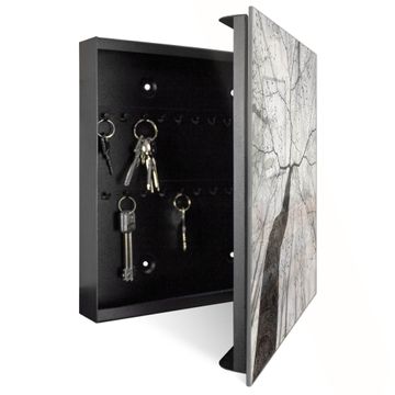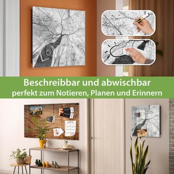 Bringe Ordnung und Eleganz in deinen Eingangsbereich mit dem banjado Schlüsselkasten Motiv Motiv Zwischen Bäumen 6. Die moderne Schlüsselbox kombiniert funktionales Design mit hochwertiger Verarbeitung und wird so zu einem echten Hingucker in Flur, Büro oder Ferienwohnung. ✅ Stilvolle Schlüsselaufbewahrung mit Glasfront im Motiv Motiv Zwischen Bäumen 6 Der Design-Schlüsselkasten Motiv Motiv Zwischen Bäumen 6 bietet Platz für bis zu 50 Schlüssel, die auf 5 stabilen Reihen mit je 10 Haken übersichtlich verstaut werden. Mit seinen kompakten Maßen von 30 x 30 x 5 cm passt die Schlüsselbox perfekt auch in kleinere Räume. Der schwarz lackierte Stahlkorpus mit rechts angeschlagenem Türscharnier harmoniert mit der Glasfront und fügt sich nahtlos in jedes Wohnambiente ein. Ob als Schlüsselorganizer für Zuhause oder als praktische Lösung für Büros, Praxen und Gewerbe, der banjado Schlüsselkasten sorgt für Ordnung und Übersicht. Dank der magnetischen, mit Kreidestiften beschreibbaren Glasfront kannst du Notizen anheften oder Termine direkt auf der Oberfläche festhalten. Die Schlüsselbox Motiv Motiv Zwischen Bäumen 6 zur Wandmontage wird inklusive Befestigungsmaterial geliefert und ist schnell angebracht. So hast du deine Schlüssel jederzeit griffbereit und zugleich stilvoll verstaut. Mit diesem banjado Schlüsselkasten Motiv Motiv Zwischen Bäumen 6 kombinierst du praktische Aufbewahrung mit stilvollem Wohndesign. Ob privat oder geschäftlich, die Schlüsselbox sorgt für mehr Ordnung, Übersicht und ein wohnliches Ambiente.Vorteile im Überblick