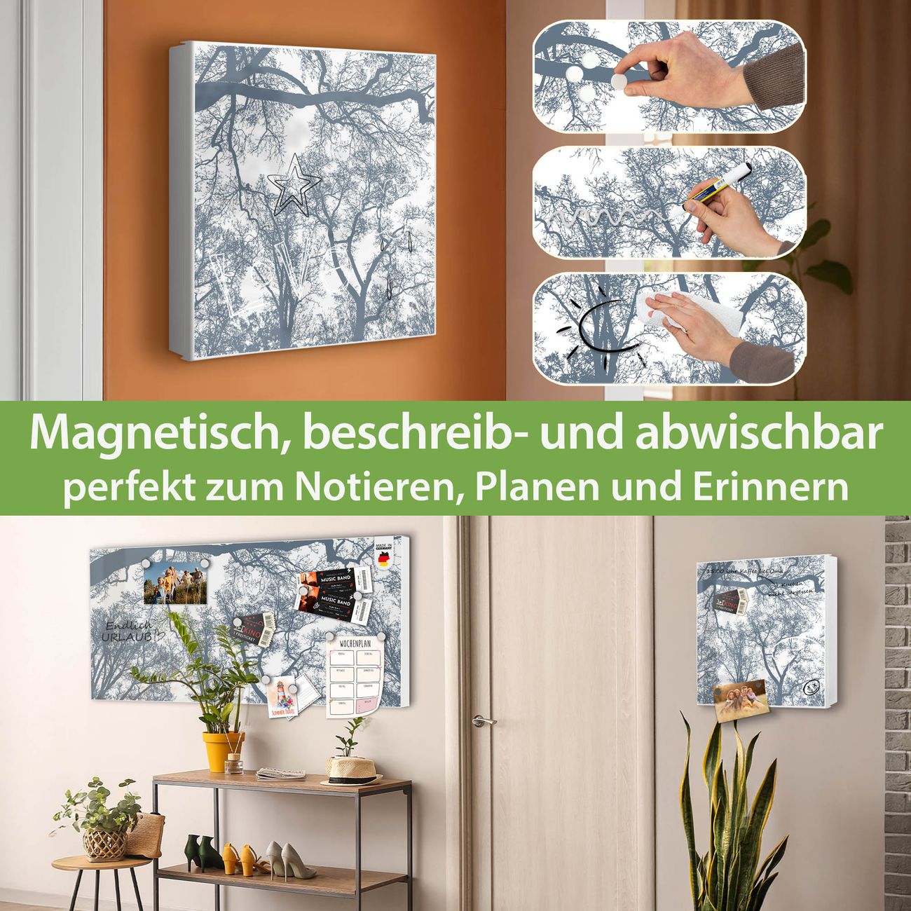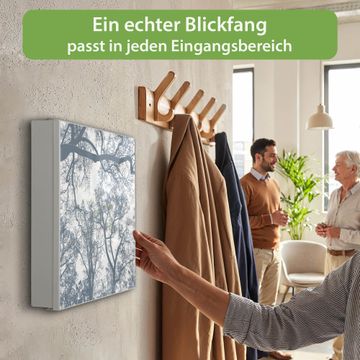 Bringe Ordnung und Eleganz in deinen Eingangsbereich mit dem banjado Schlüsselkasten Motiv Motiv Zwischen Bäumen 7. Die moderne Schlüsselbox kombiniert funktionales Design mit hochwertiger Verarbeitung und wird so zu einem echten Hingucker in Flur, Büro oder Ferienwohnung. ✅ Stilvolle Schlüsselaufbewahrung mit Motiv Motiv Zwischen Bäumen 7 Der Design-Schlüsselkasten Motiv Motiv Zwischen Bäumen 7 bietet Platz für bis zu 32 Schlüssel, die auf 4 stabilen Reihen mit je 8 Haken übersichtlich verstaut werden. Mit seinen kompakten Maßen von 30 x 30 x 5 cm passt die Schlüsselbox perfekt auch in kleinere Räume. Der weiß lackierte Stahlkorpus mit links angeschlagenem Türscharnier harmoniert mit gedruckten Folie auf der Front und fügt sich nahtlos in jedes Wohnambiente ein. Ob als Schlüsselorganizer für Zuhause oder als praktische Lösung für Büros, Praxen und Gewerbe, der banjado Schlüsselkasten sorgt für Ordnung und Übersicht. Dank der magnetischen, mit Kreidestiften beschreibbaren Folie auf der Front kannst du Notizen anheften oder Termine direkt auf der Oberfläche festhalten. Die Schlüsselbox Motiv Motiv Zwischen Bäumen 7 zur Wandmontage wird inklusive Befestigungsmaterial geliefert und ist schnell angebracht. So hast du deine Schlüssel jederzeit griffbereit und zugleich stilvoll verstaut. Mit diesem banjado Schlüsselkasten Motiv Motiv Zwischen Bäumen 7 kombinierst du praktische Aufbewahrung mit stilvollem Wohndesign. Ob privat oder geschäftlich, die Schlüsselbox sorgt für mehr Ordnung, Übersicht und ein wohnliches Ambiente.Vorteile im Überblick