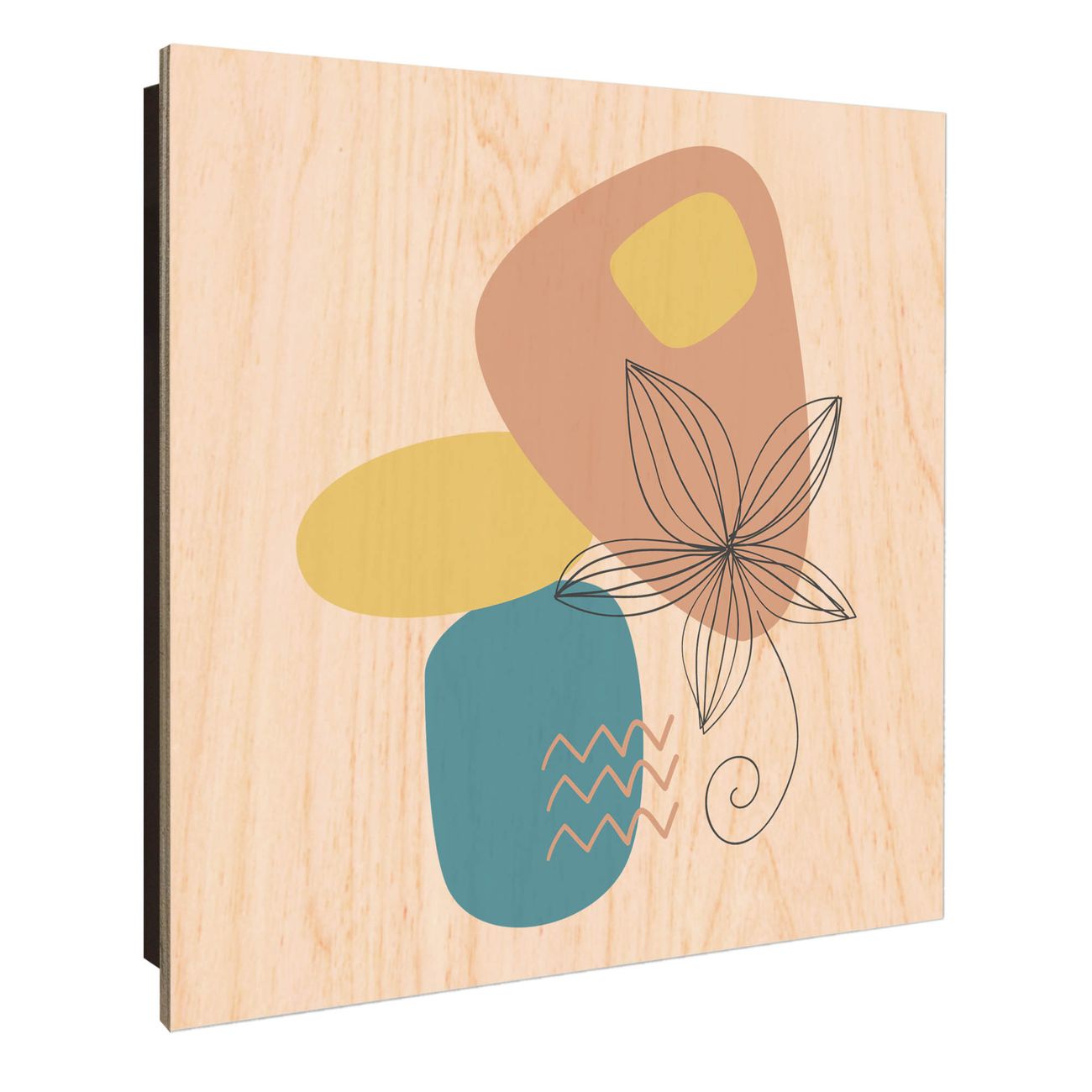 Schlüsselkasten mit Holzfront - Design Schlüsselbox Motiv Abstrakte Blumenkontur