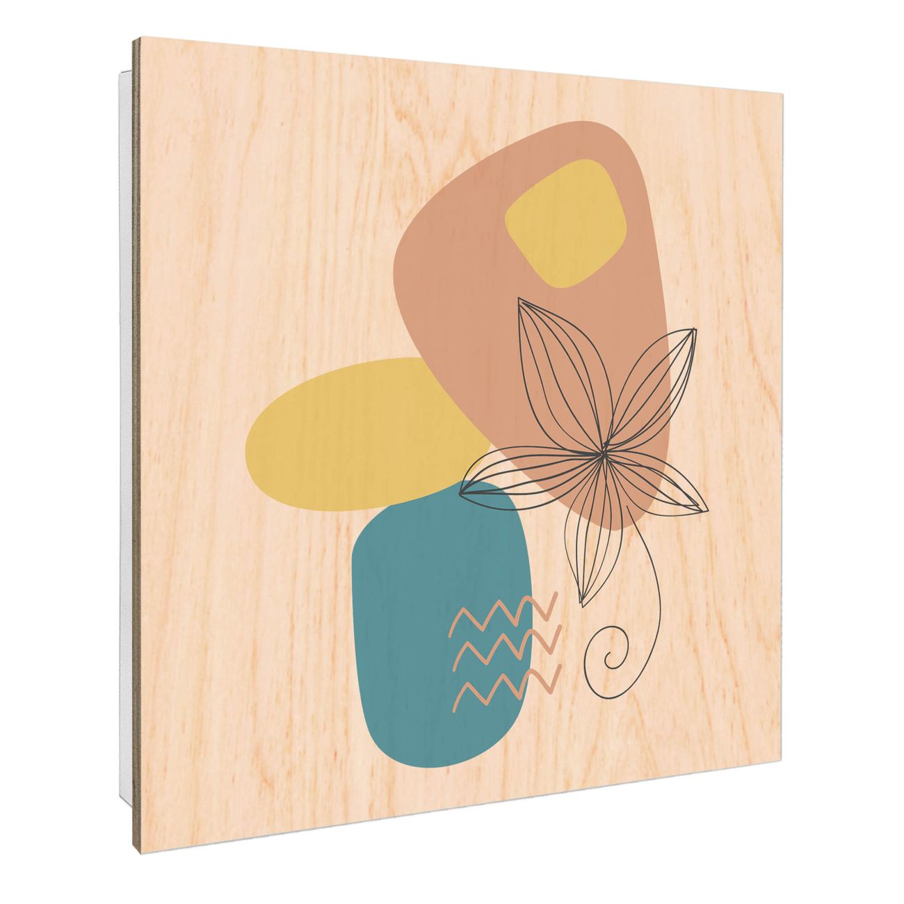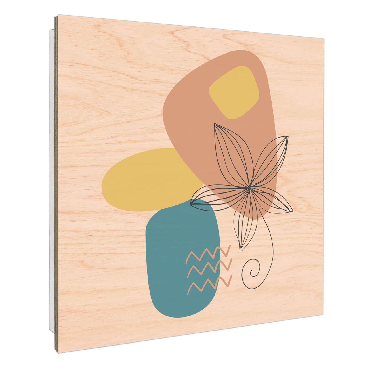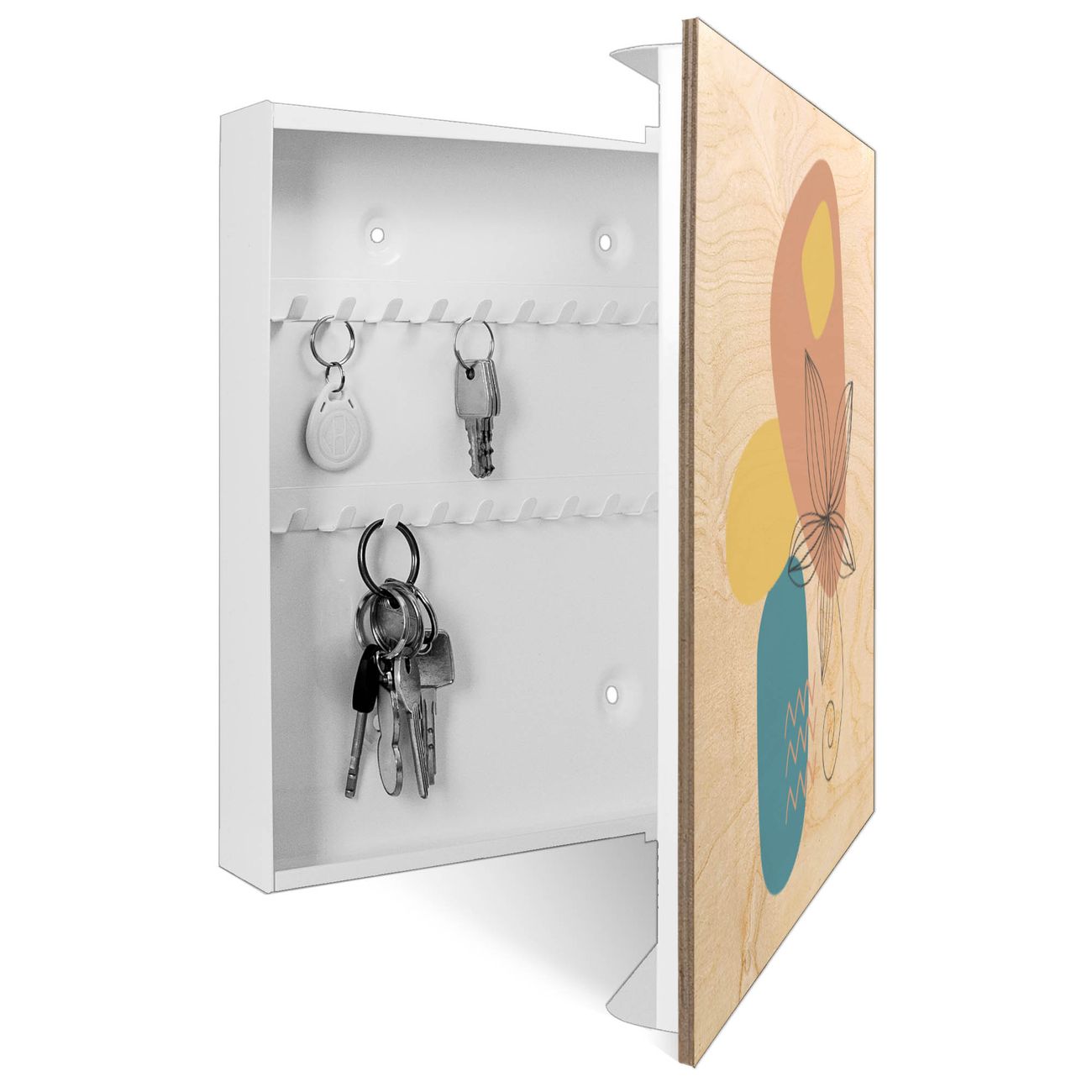 Schlüsselkasten mit Holzfront - Design Schlüsselbox Motiv Abstrakte Blumenkontur