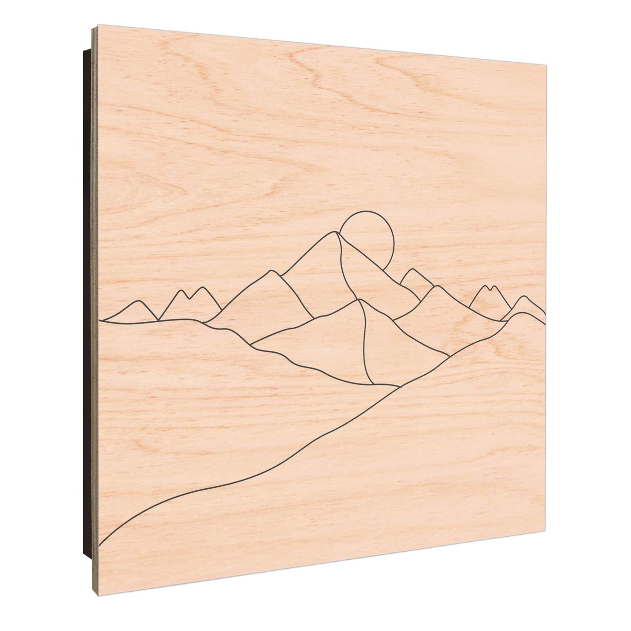 Schlüsselkasten mit Holzfront - Design Schlüsselbox Motiv Bergsilhouette Lineart 2