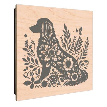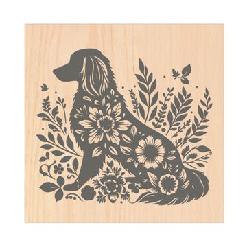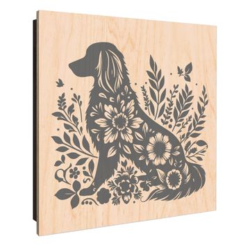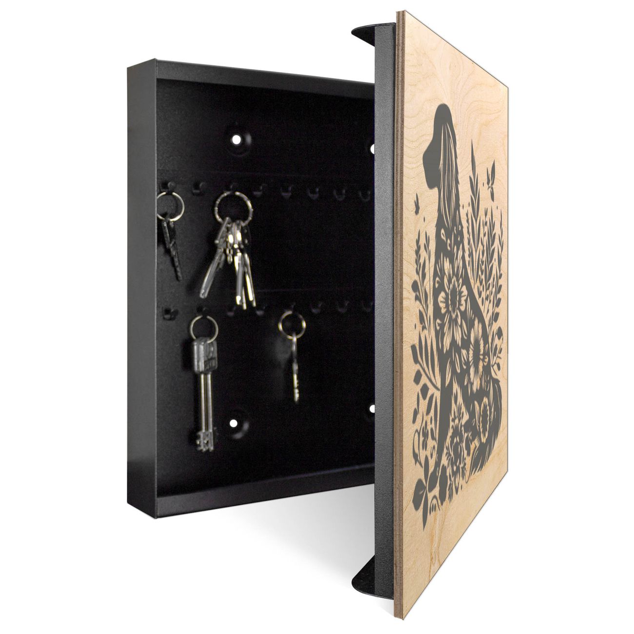 Schlüsselkasten mit Holzfront - Design Schlüsselbox Motiv Blumenhund Silhouette