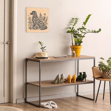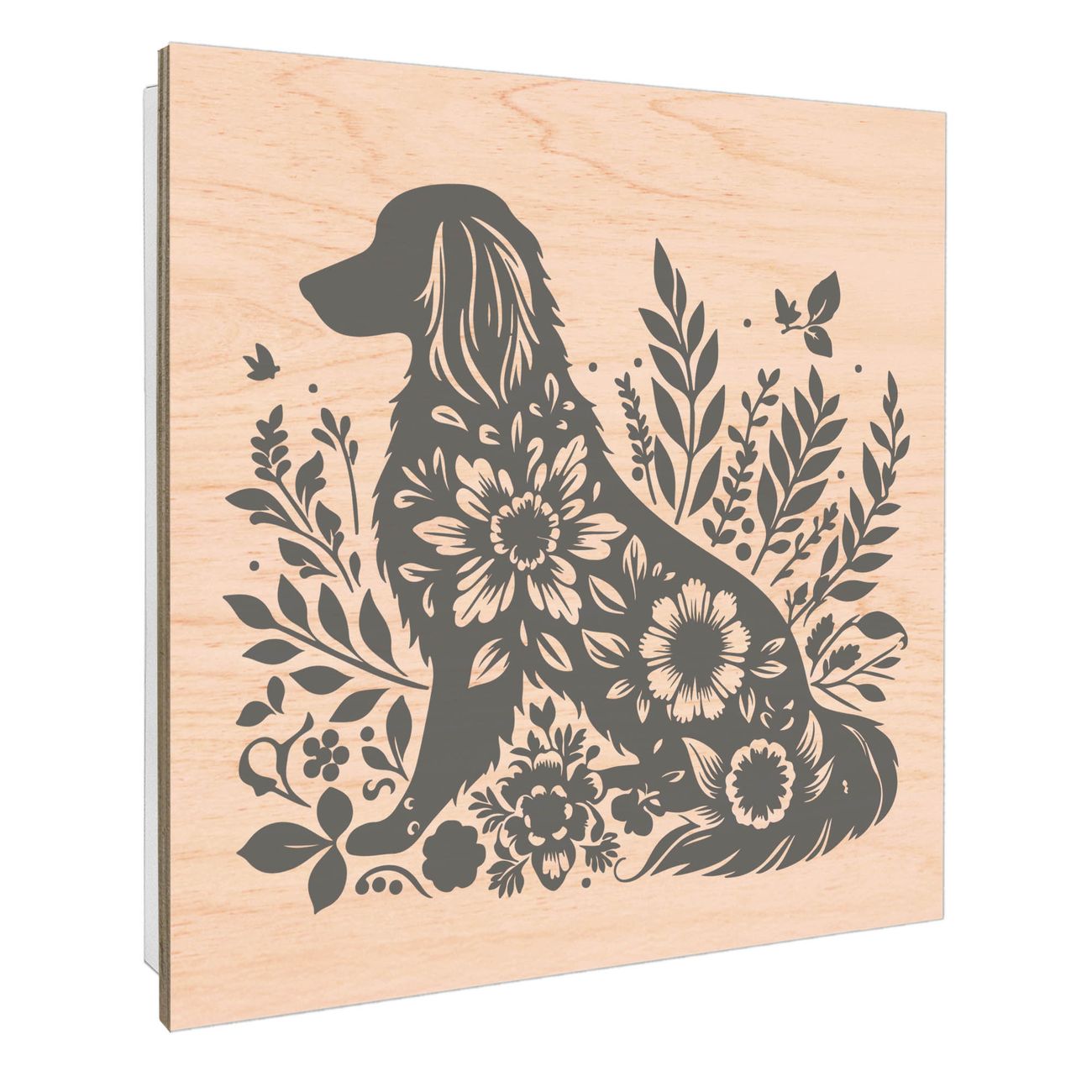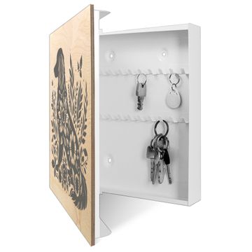 Schlüsselkasten mit Holzfront - Design Schlüsselbox Motiv Blumenhund Silhouette