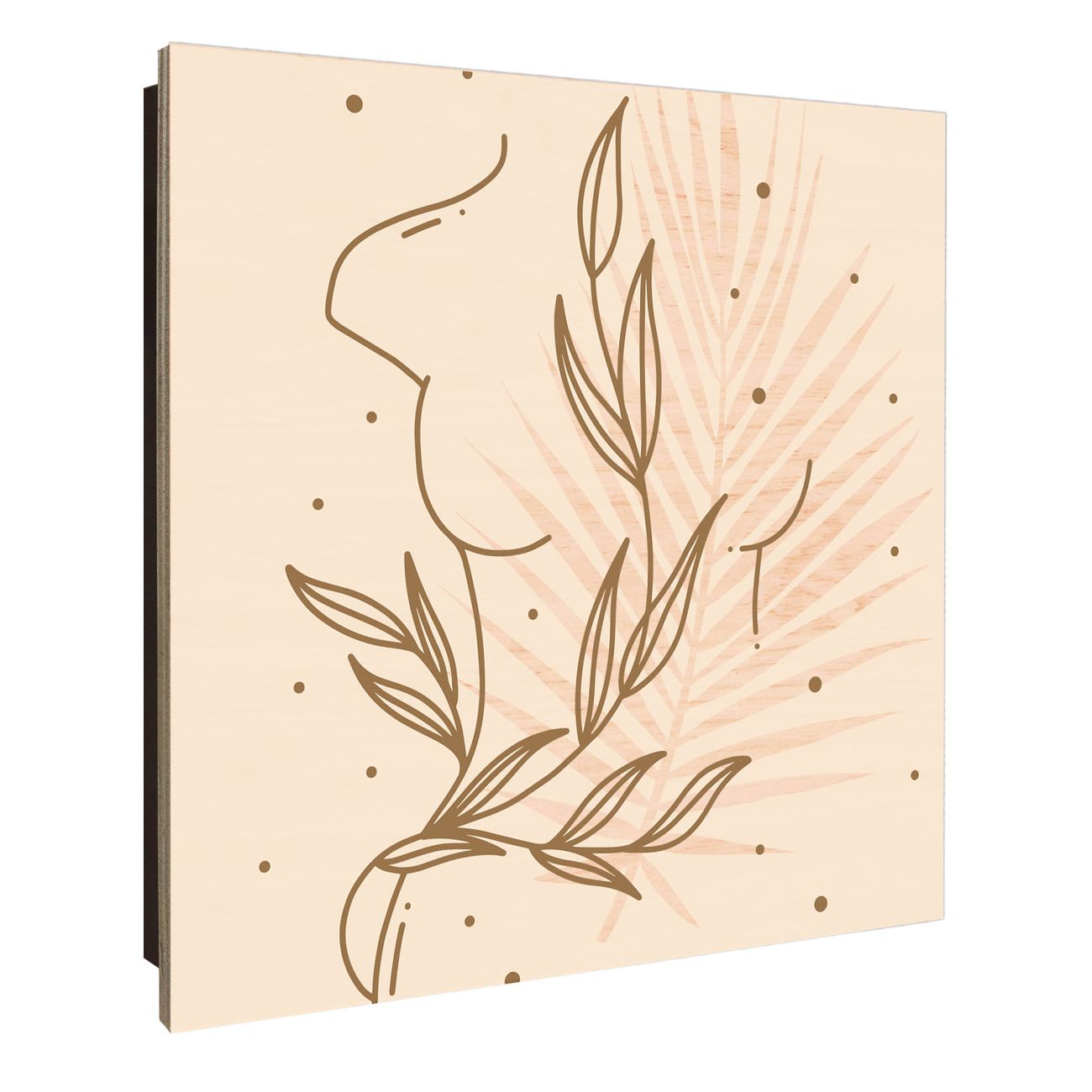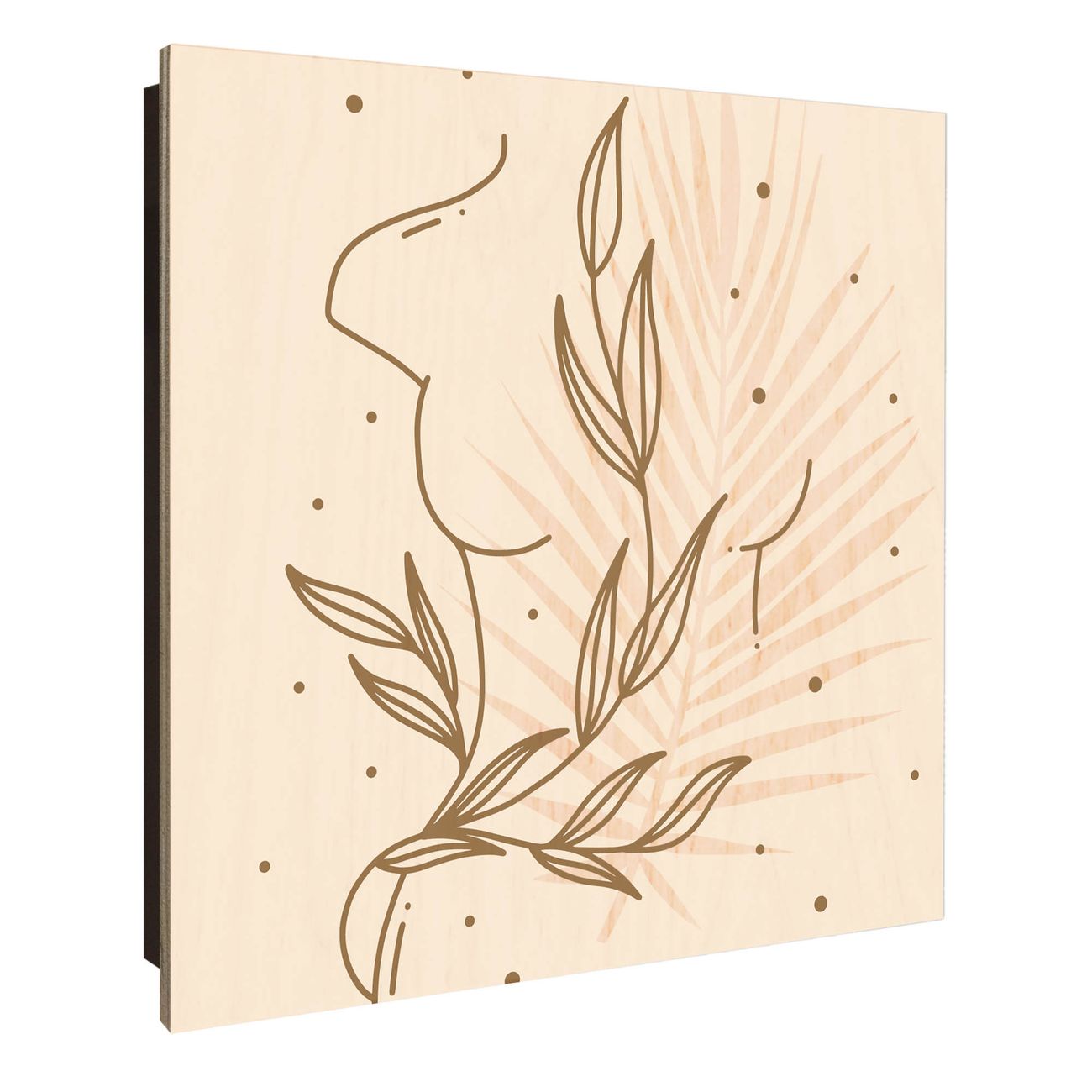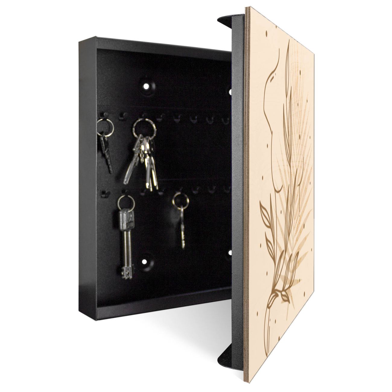 Schlüsselkasten mit Holzfront - Design Schlüsselbox Motiv Botanische Linienkunst