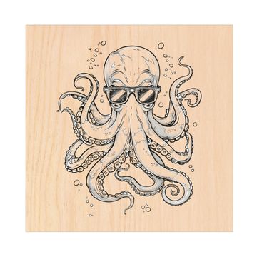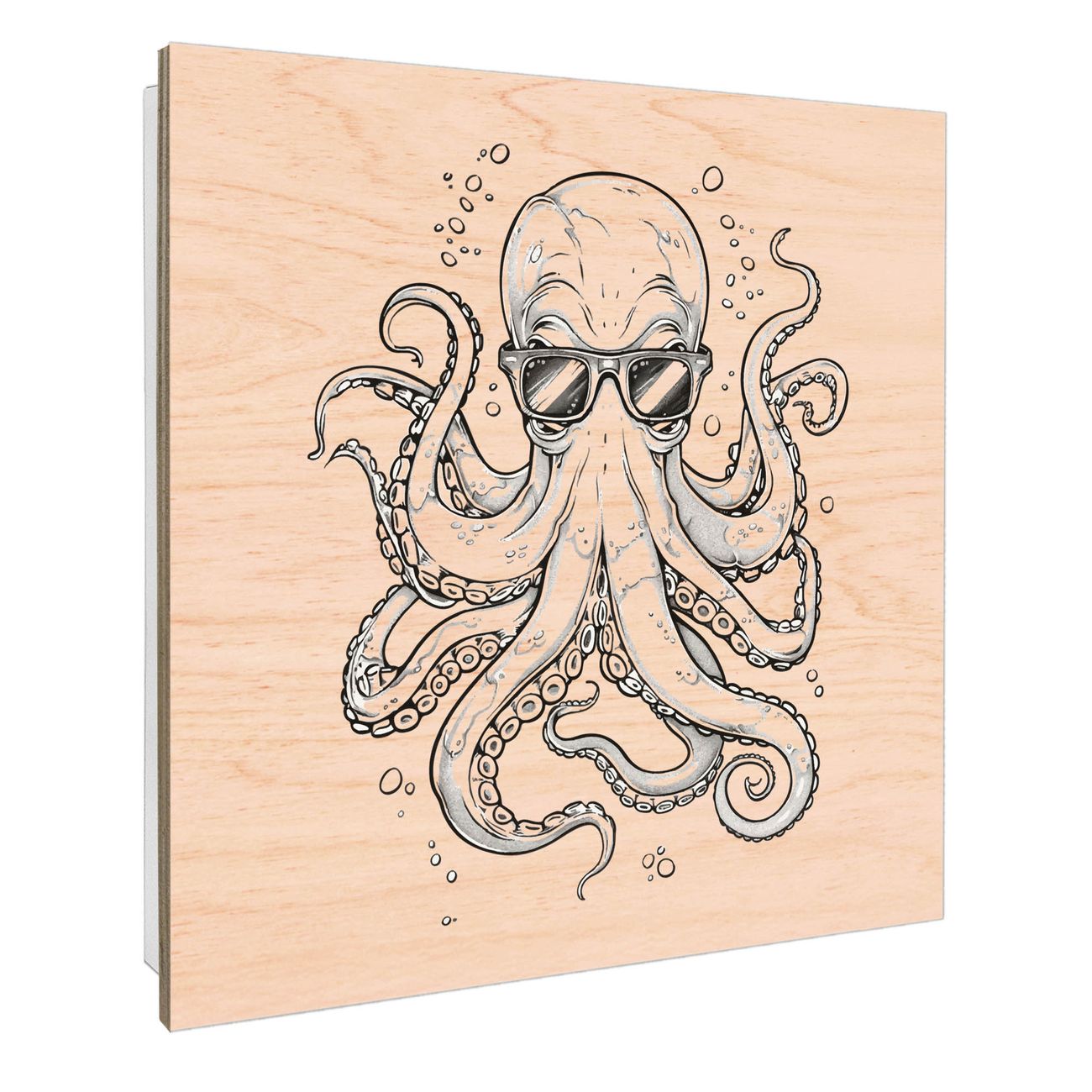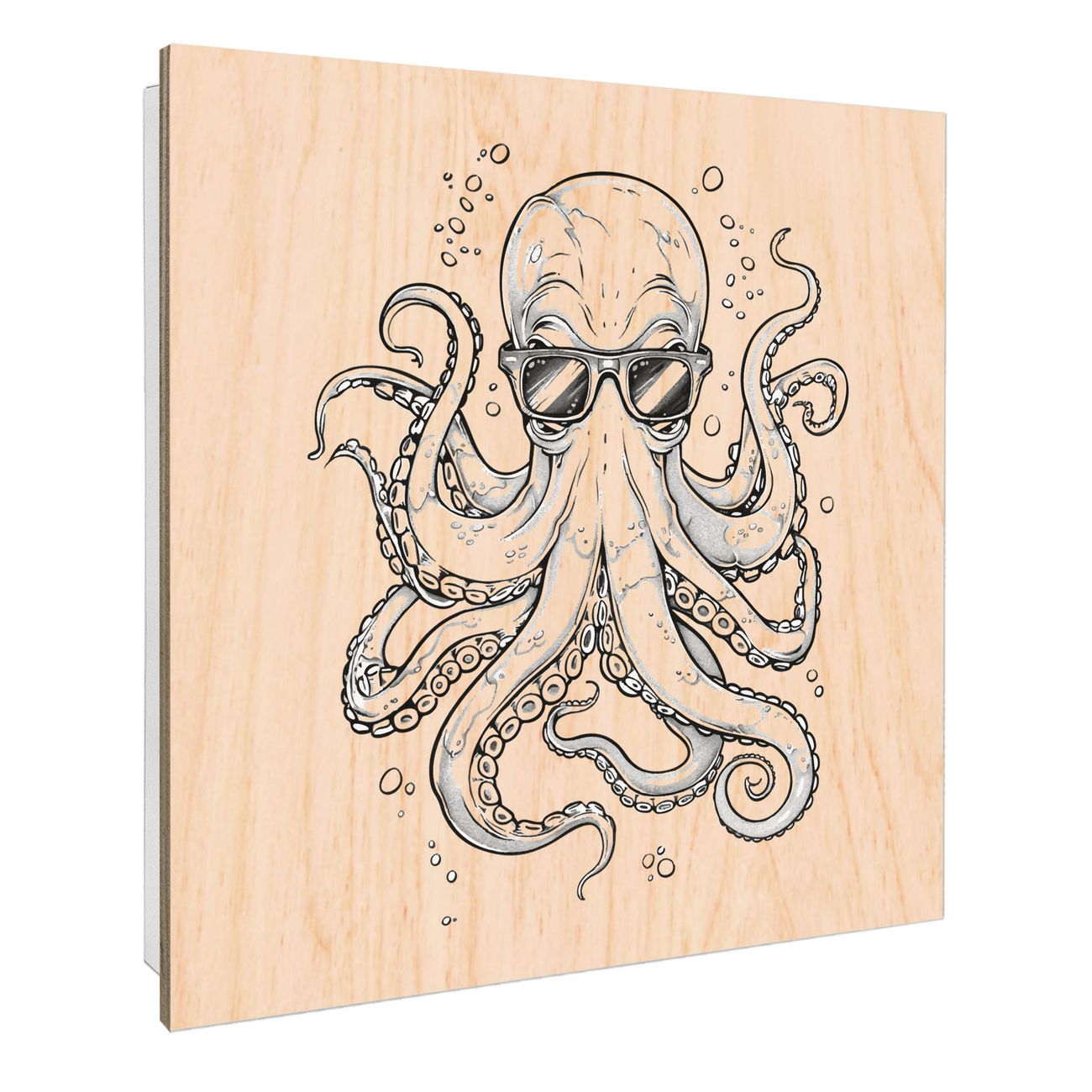 Schlüsselkasten mit Holzfront - Design Schlüsselbox Motiv Oktopus mit Brille