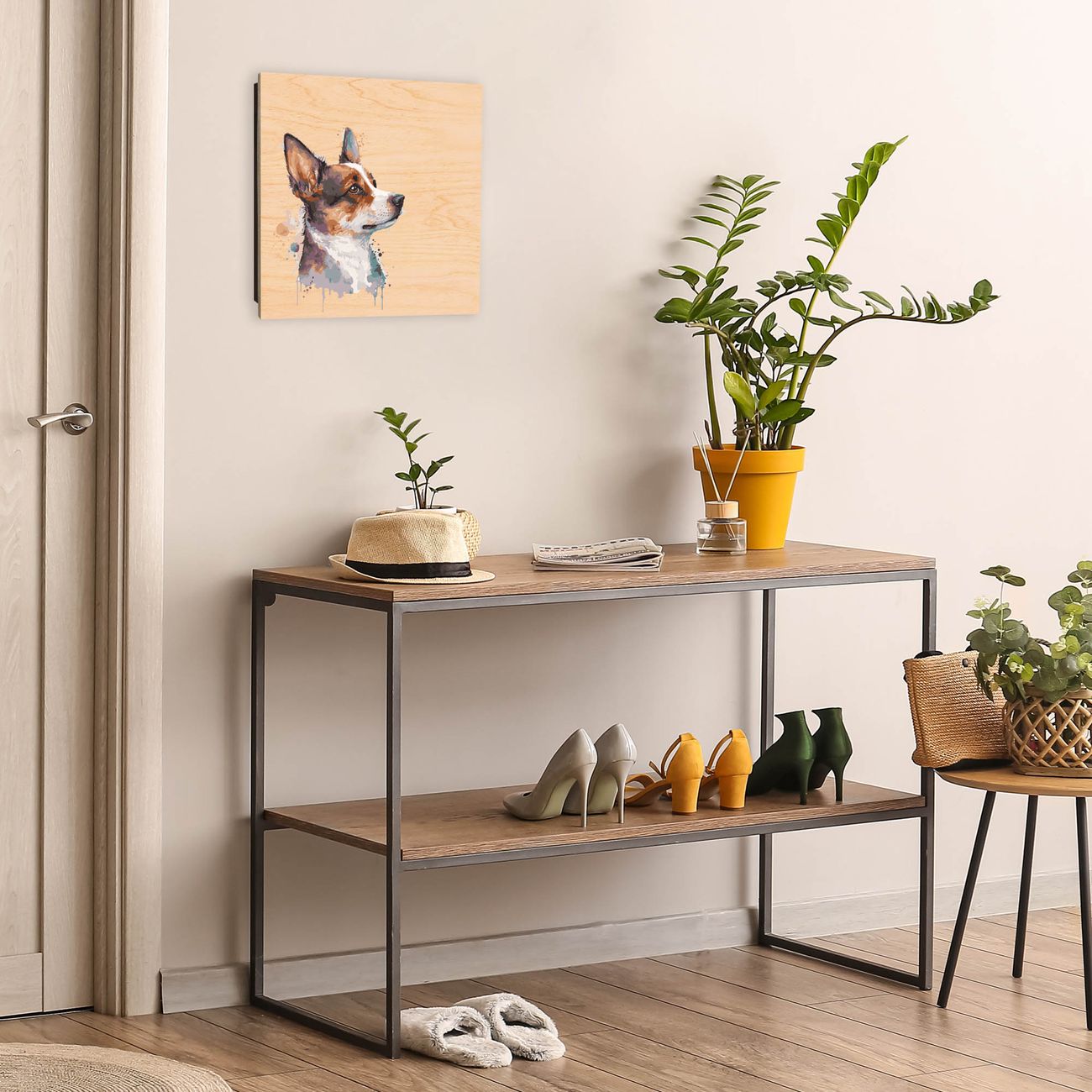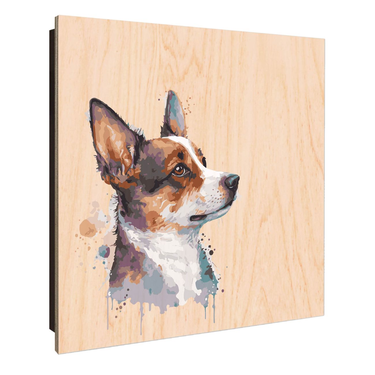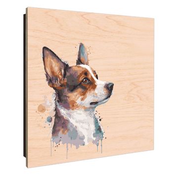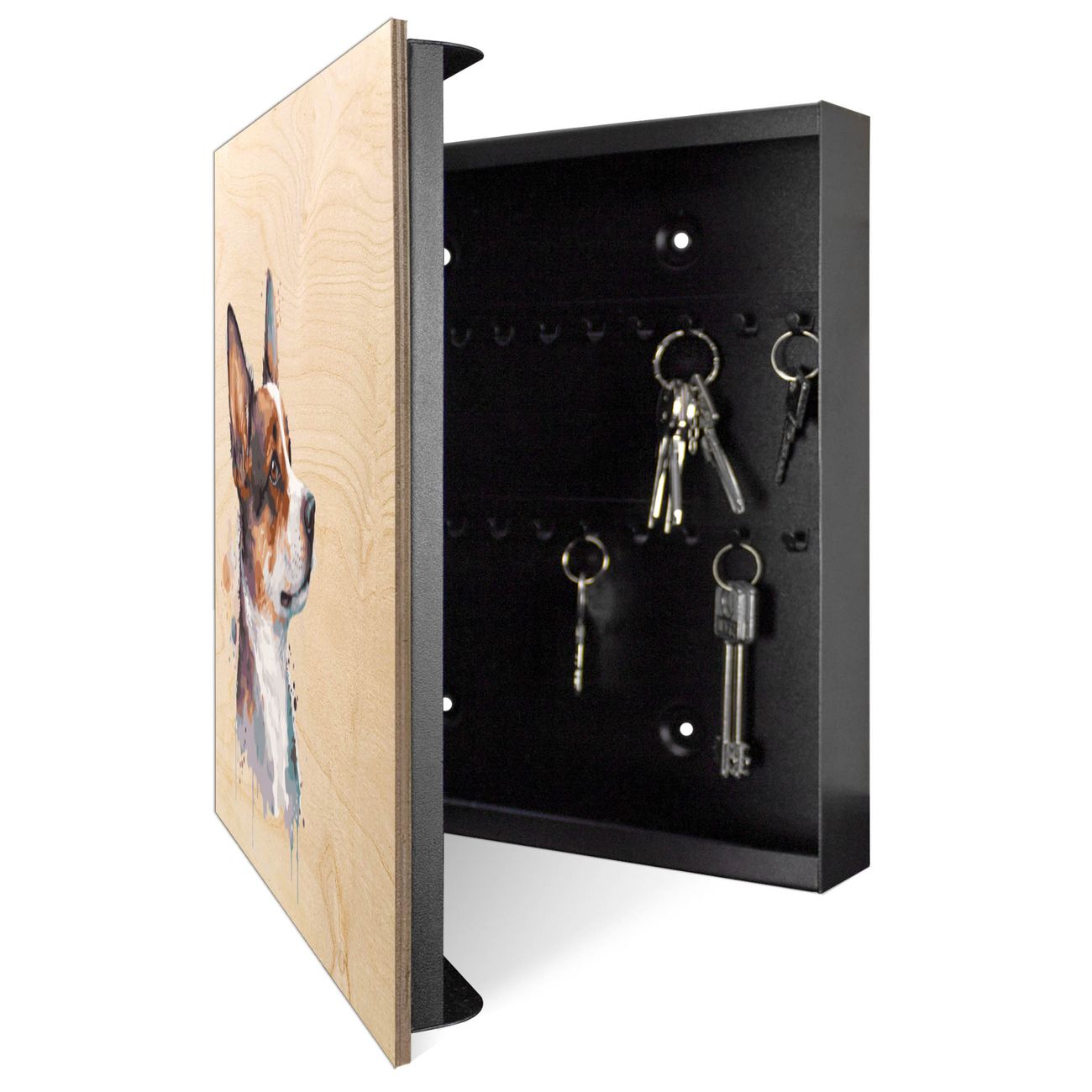 Schlüsselkasten mit Holzfront - Design Schlüsselbox Motiv Corgi Aquarell