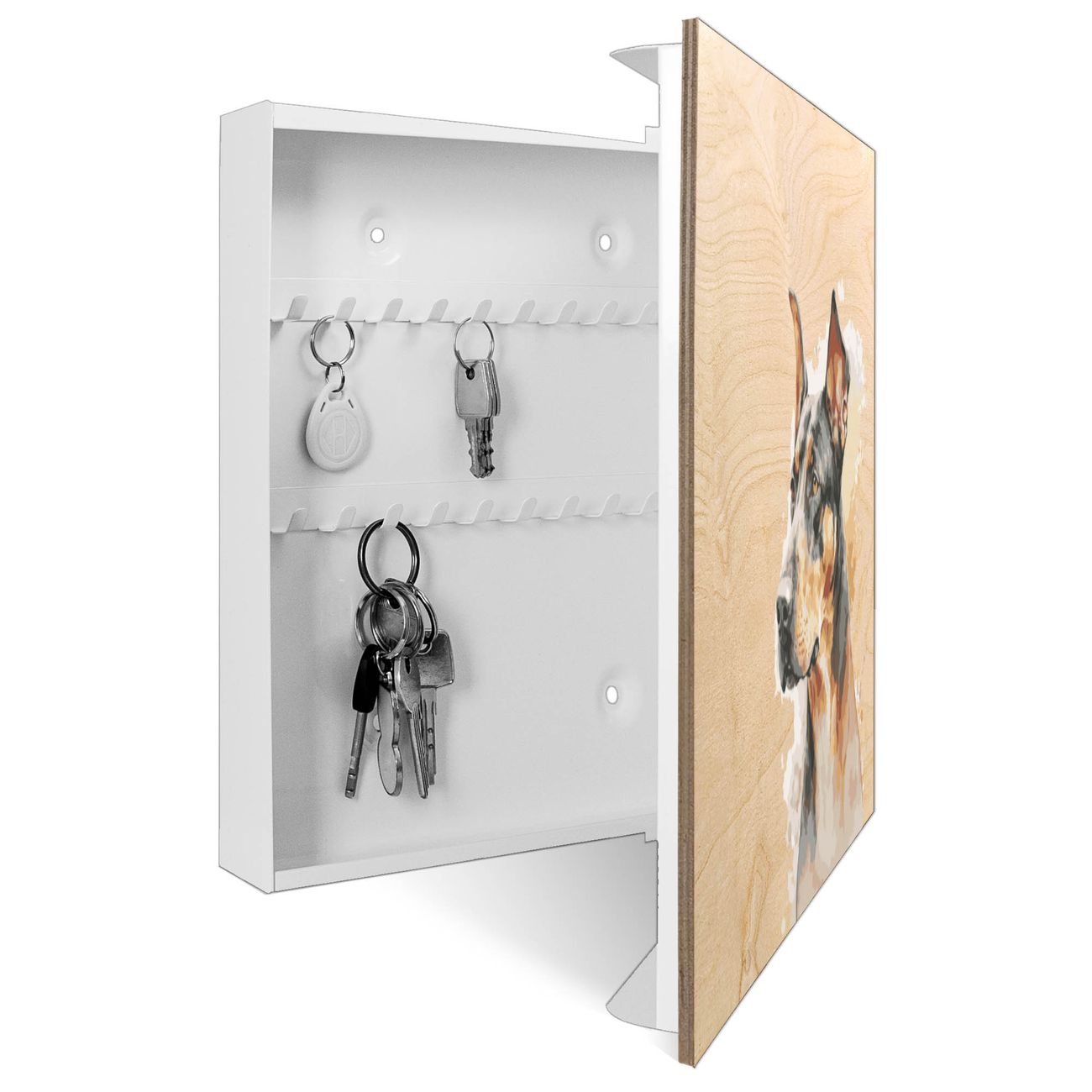 Schlüsselkasten mit Holzfront - Design Schlüsselbox Motiv Dobermann-Portrait