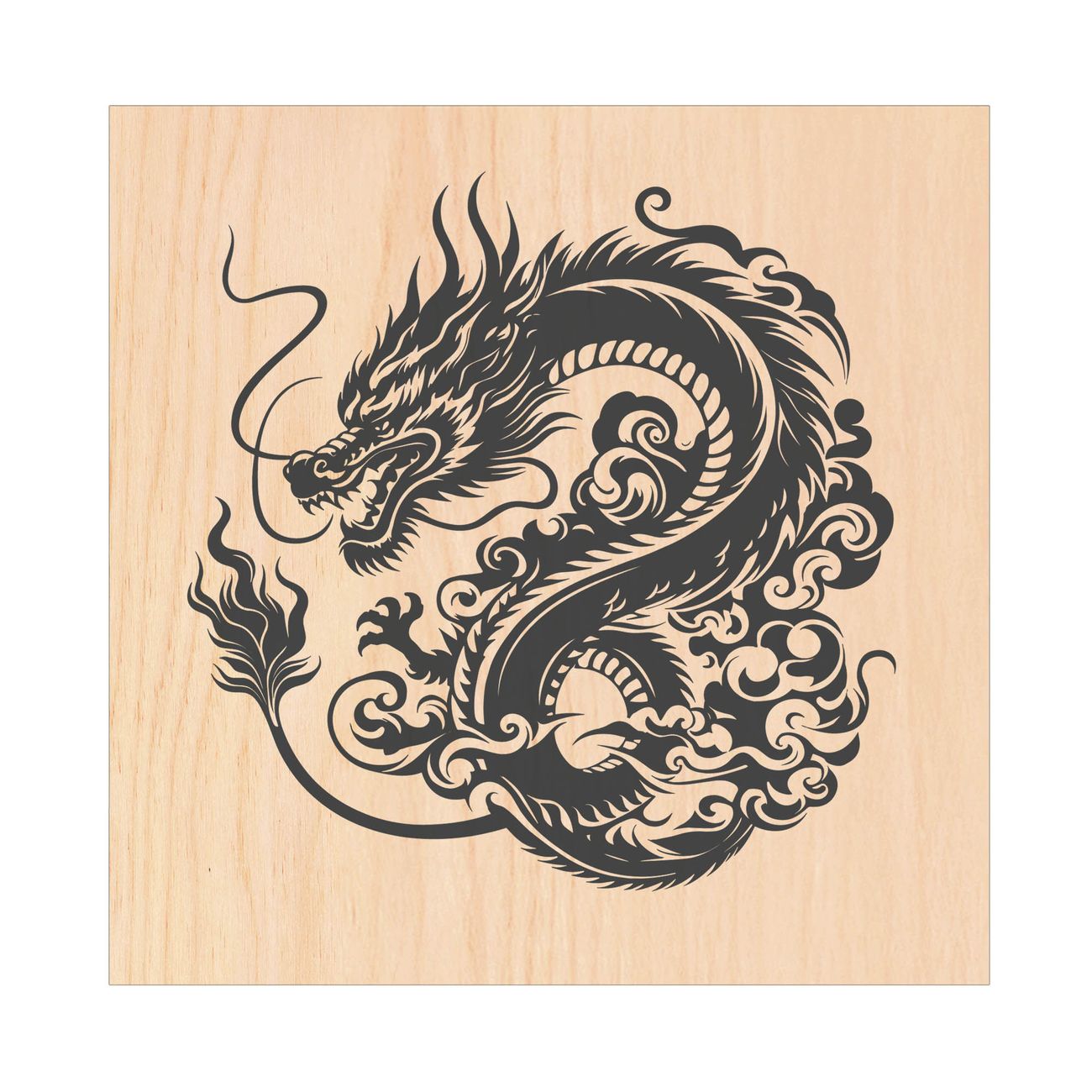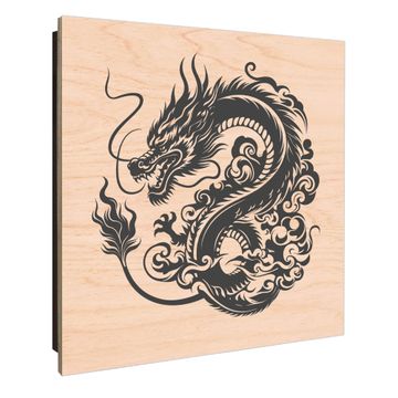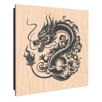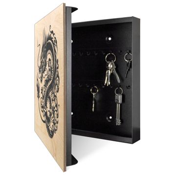 Schlüsselkasten mit Holzfront - Design Schlüsselbox Motiv Drachen Silhouette