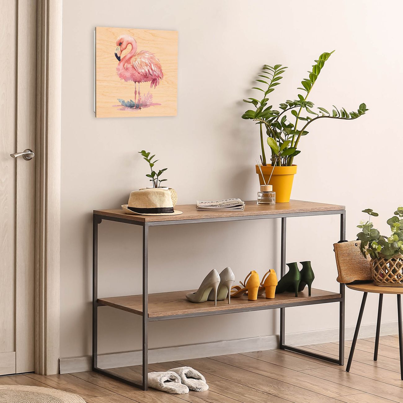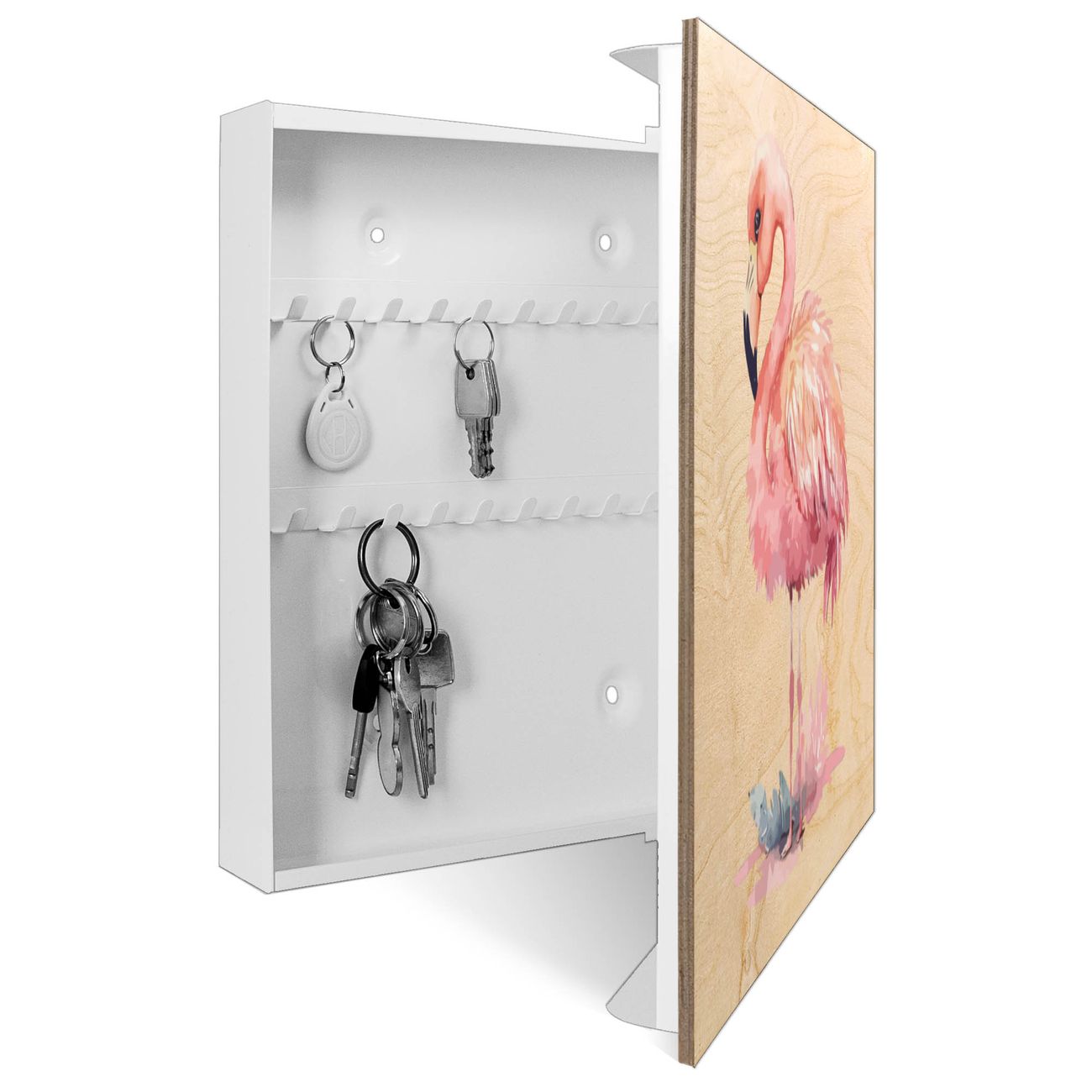 Schlüsselkasten mit Holzfront - Design Schlüsselbox Motiv Exotischer Flamingo
