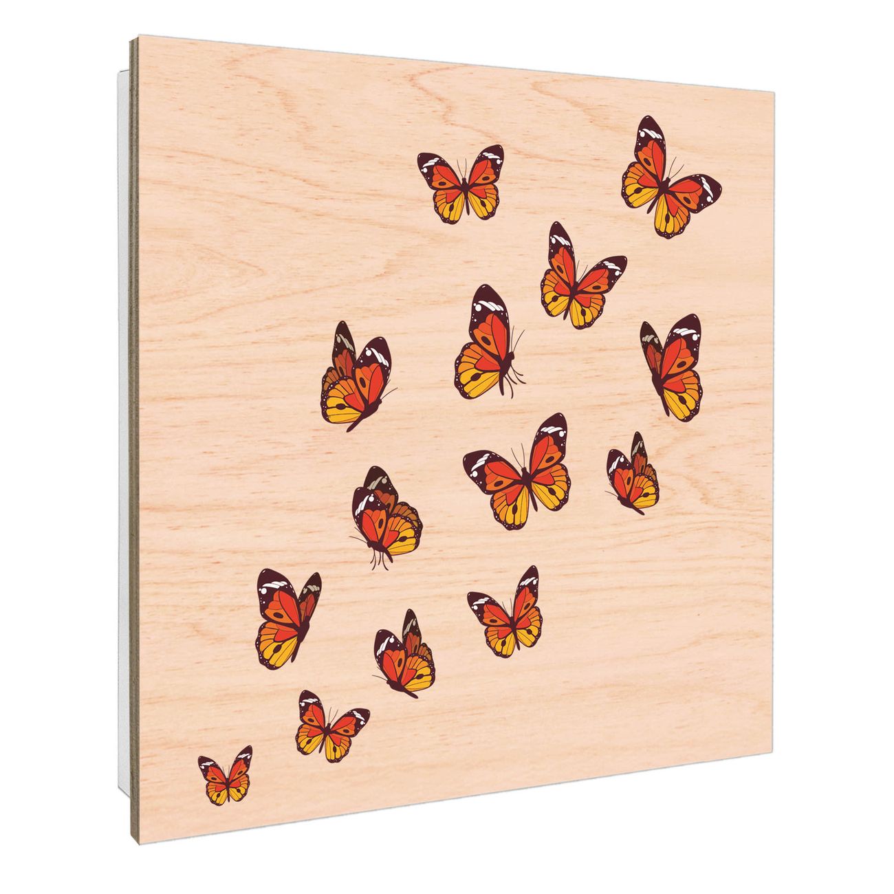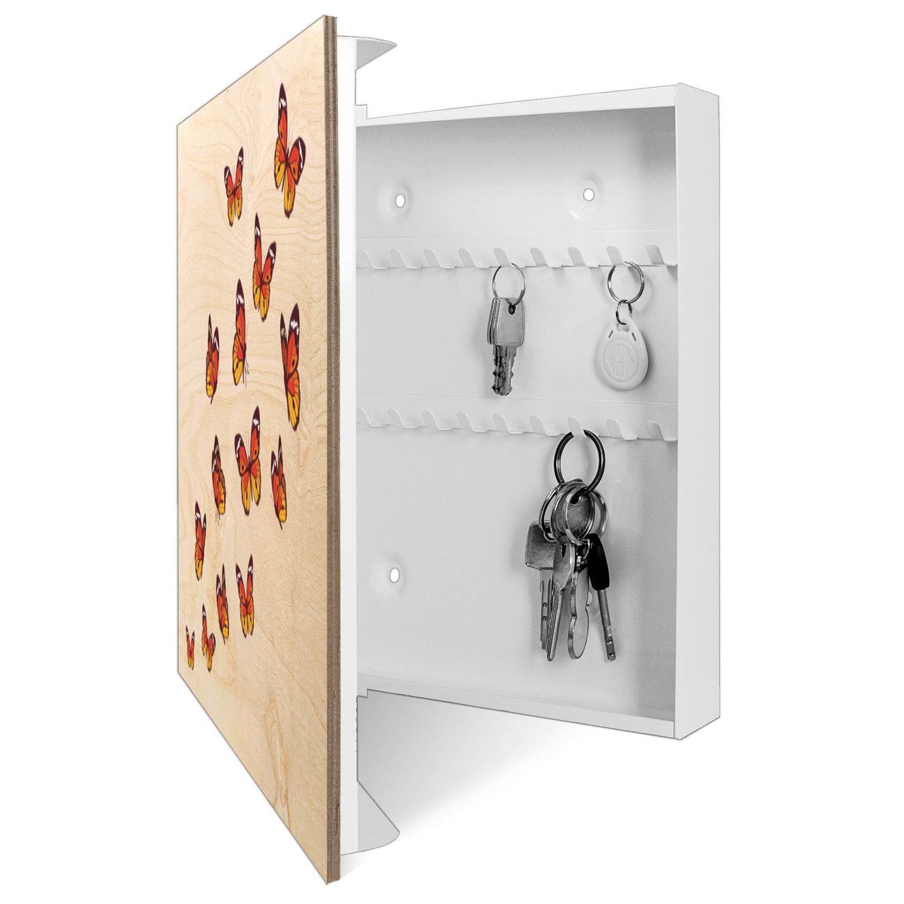 Schlüsselkasten mit Holzfront - Design Schlüsselbox Motiv Farbige Schmetterlinge