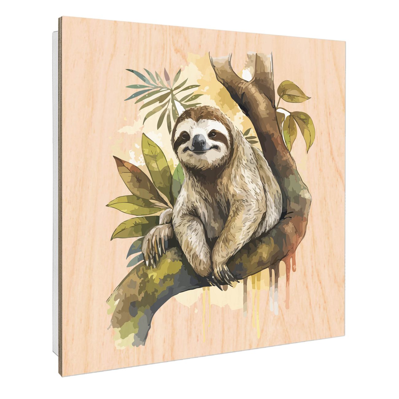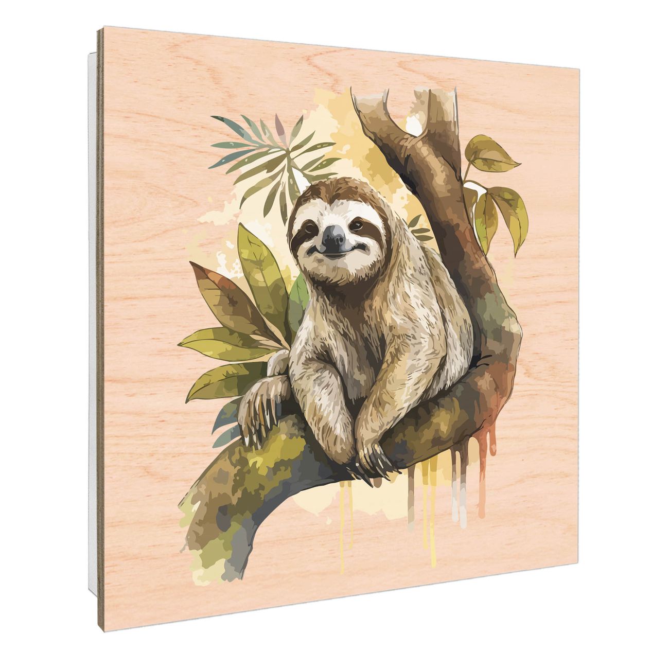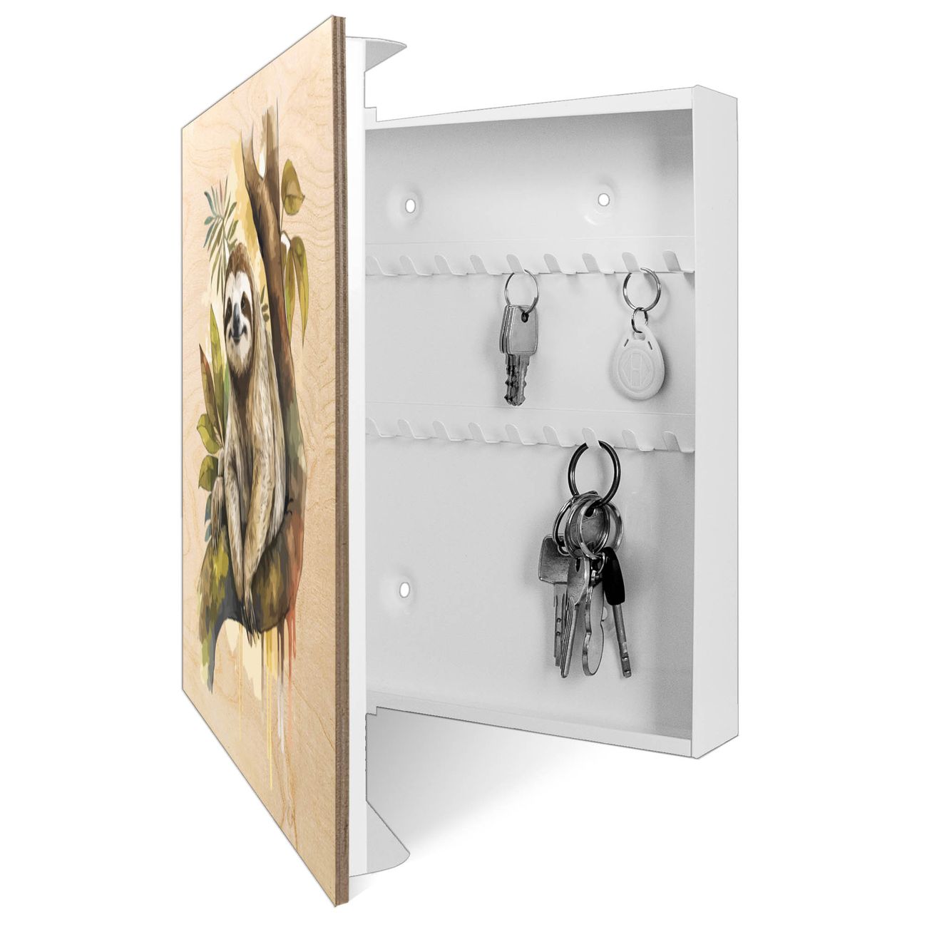Schlüsselkasten mit Holzfront - Design Schlüsselbox Motiv Faultier im Baum
